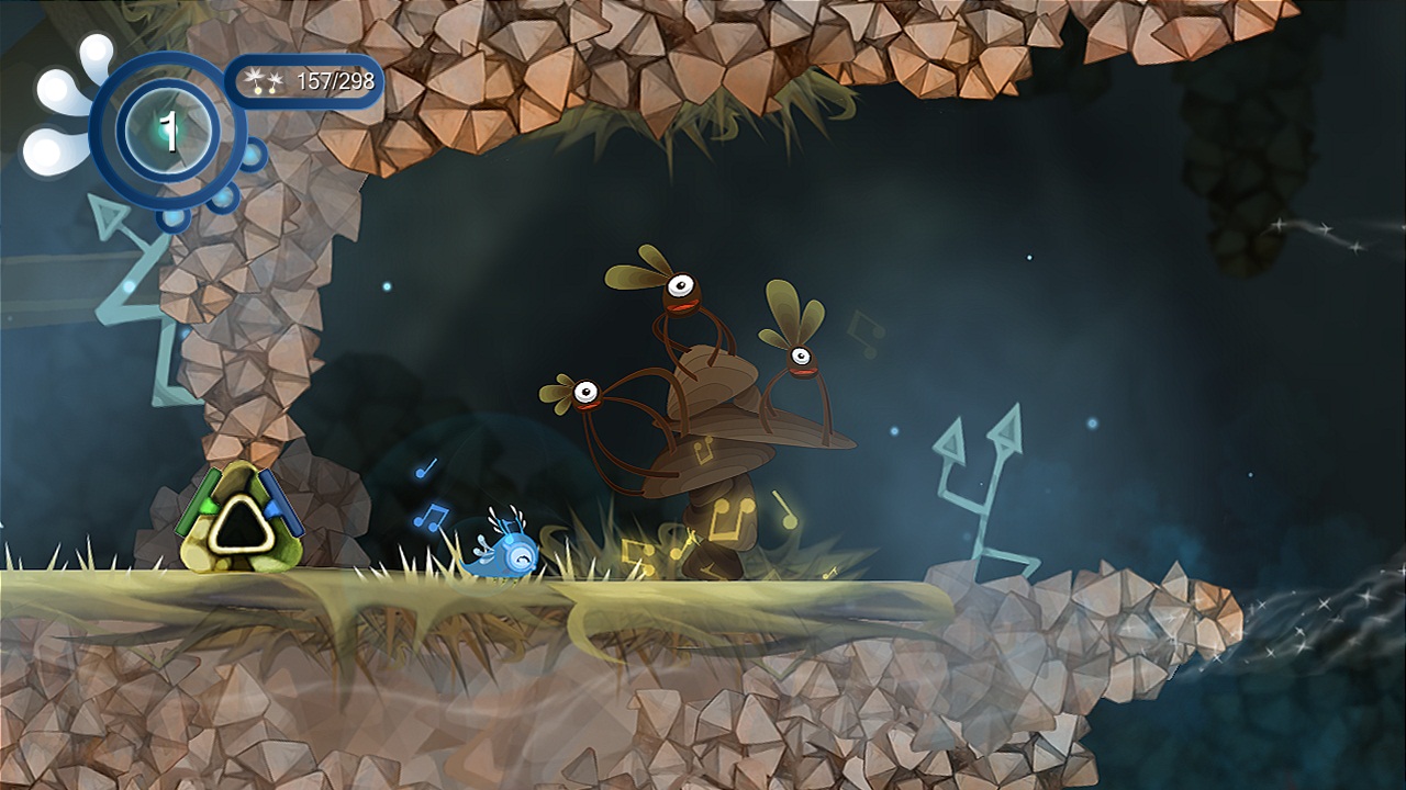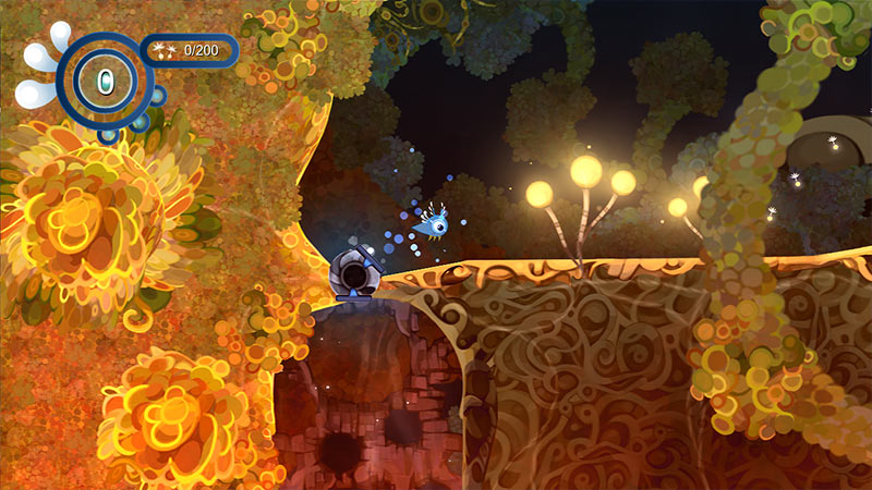Остановимся на процессе игры чуть подробнее. Каждому персонажу доступны 2 основных режима игры: Daytime и Dream Like Night. Проходить уровни придётся в обоих режимах. Также геймплей сосредоточен на сборе семян и специальных голубых орбов. Последние ни единожды пригодятся при прохождении уровня, поскольку принимают непосредственное участие в решении головоломок. Кстати, пазлы тут не особо сложные и зачастую решаются, лишь использованием способностей бадов. Но есть и другой тип головоломок, где нужно задвинуть ящики на переключатели, которые откроют доступ к новым частям уровня. А вот голубые орбы как раз тут и пригодятся.