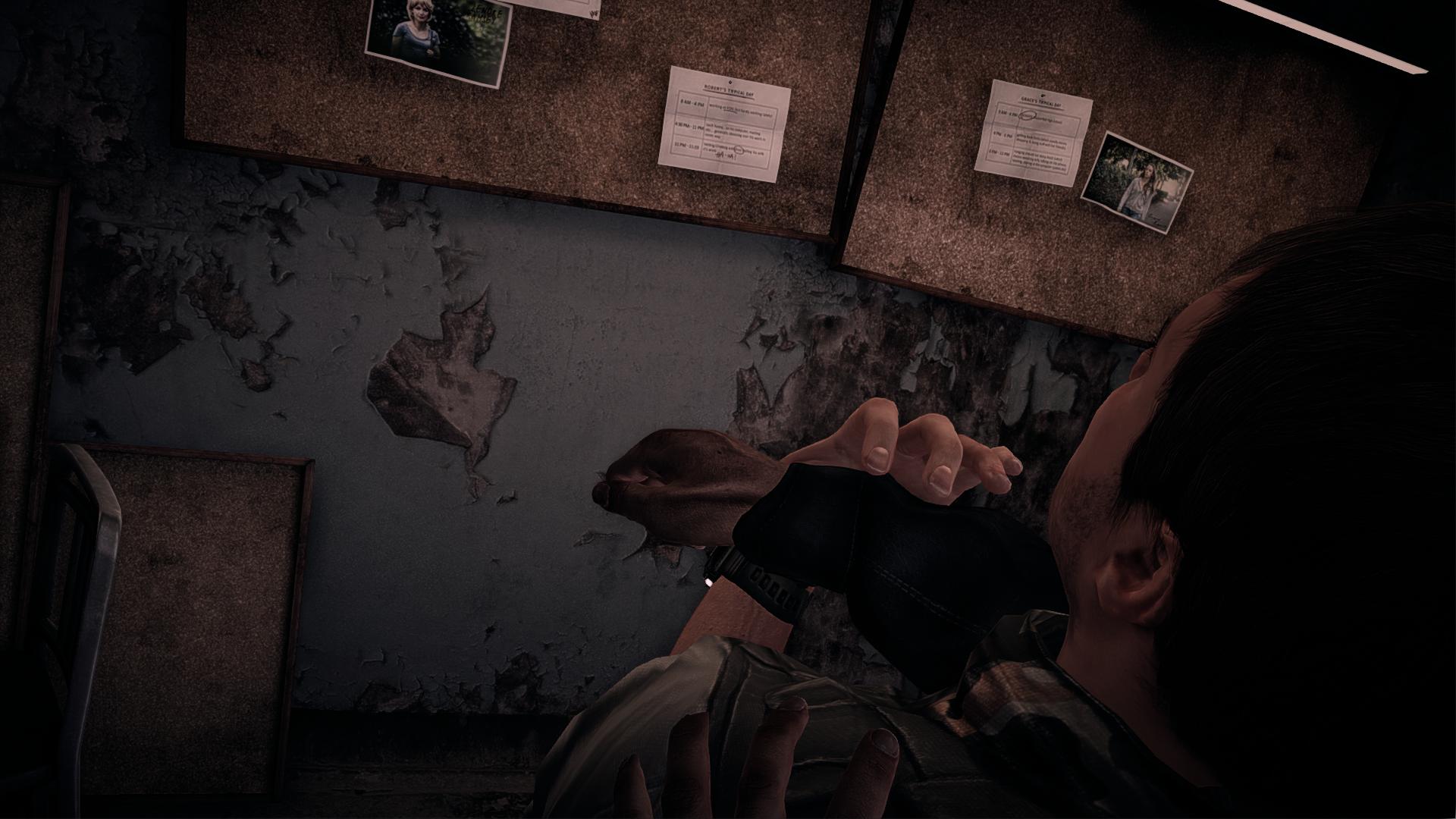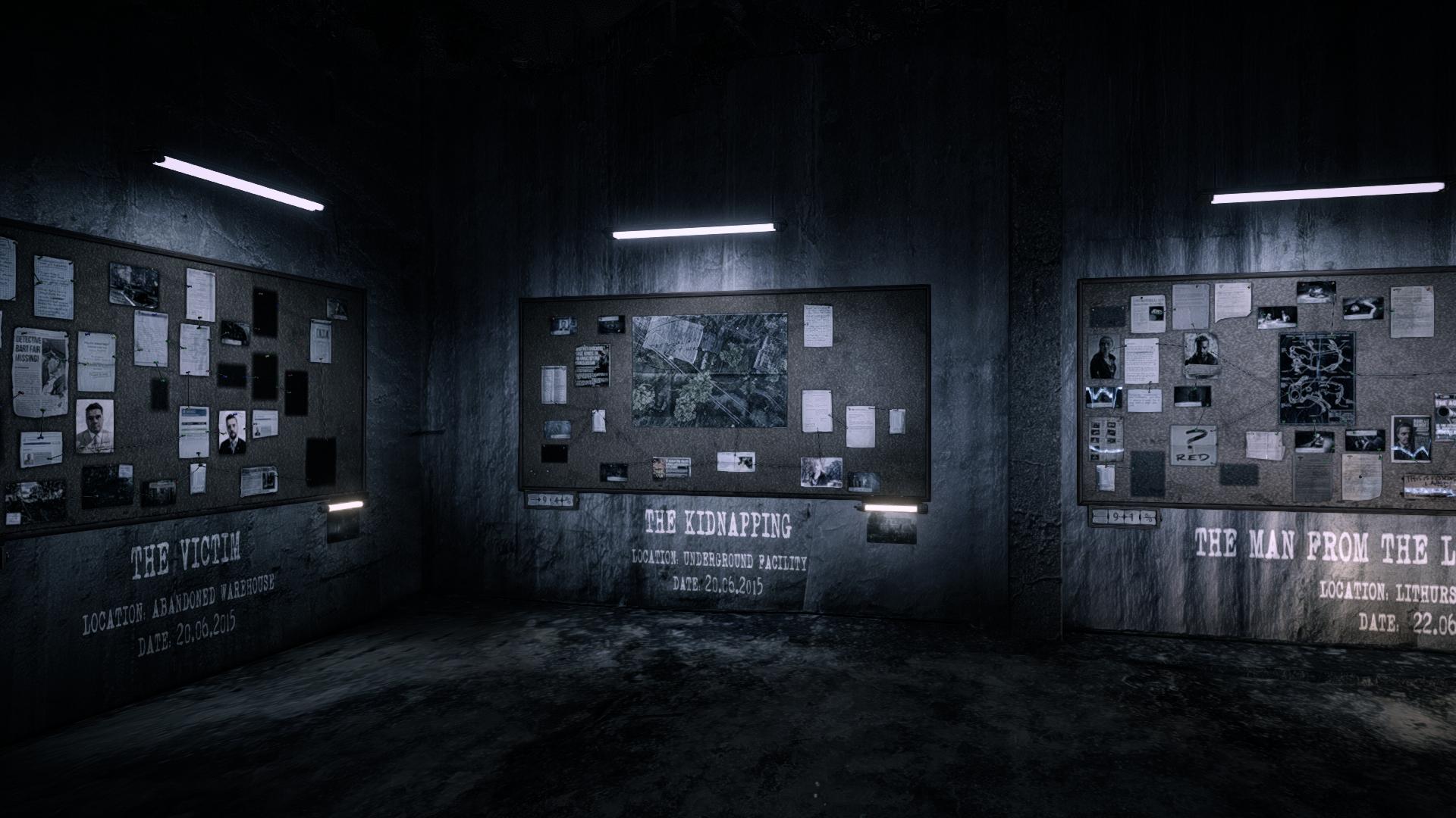 Игрок также находит различные документы, которые сохраняются в специальной комнате. Эта комната по сути является своеобразным «меню выбора уровней», так как предоставляется возможность не только посмотреть сколько вещдоков вы собрали в той или иной локации, но и ещё раз пройти данный уровень. Периодически находятся мерцающие фотографии, при помощи которых можно переместиться в какое-нибудь важное событие прошлого, чтобы разобраться в нём и вспомнить, что же произошло с той погибшей девушкой и главным героем. Это что-то похожее на Life is Strange или «Эффект бабочки».