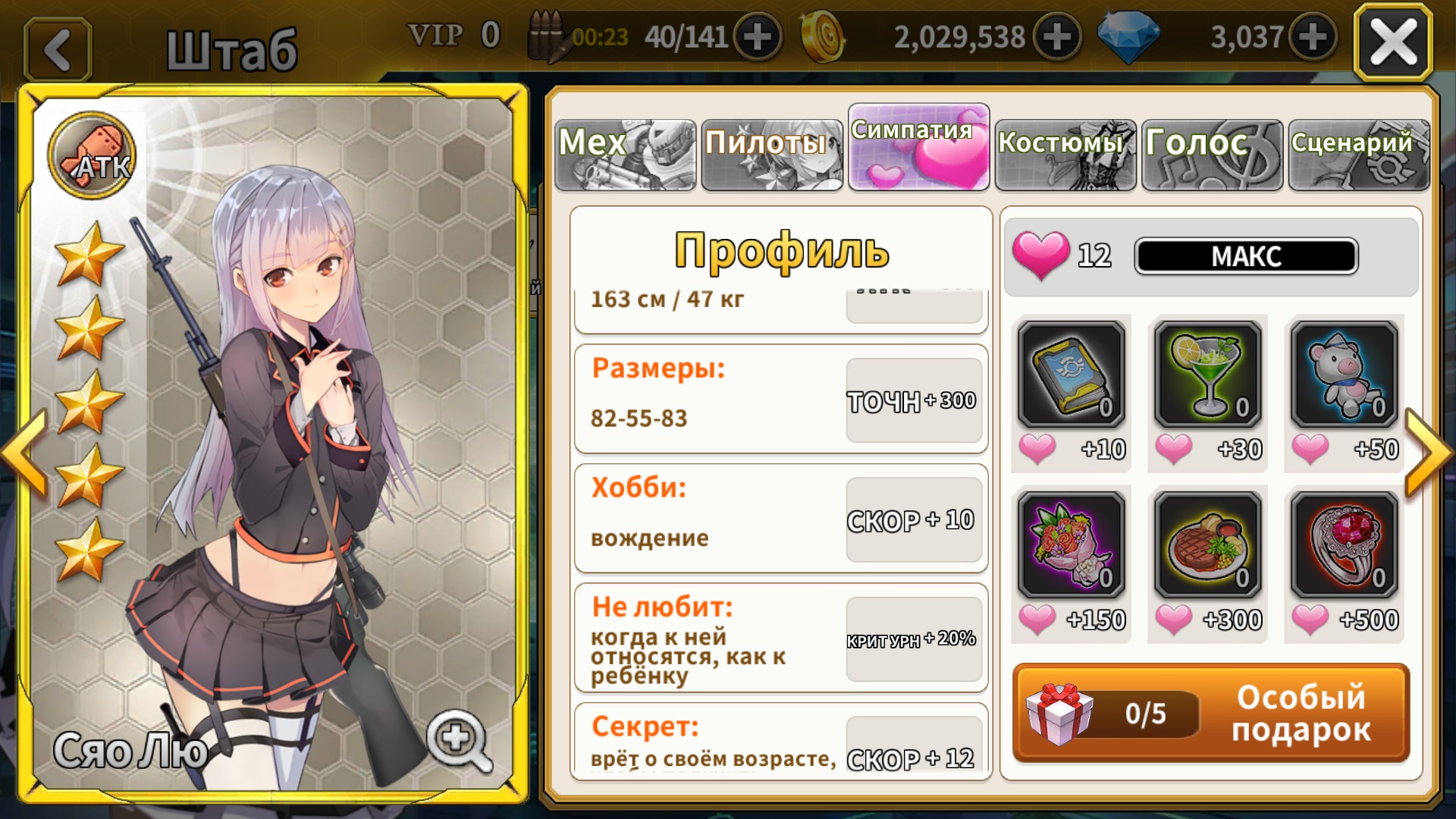 Чтобы повысить симпатию, надо дарить подарки. Пятый и девятый уровни открывают дополнительные реплики тянок.