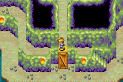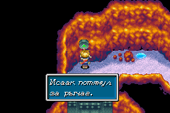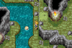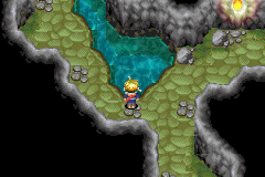 На новой локации подходите к булыжнику, и толкайте его влево. Он упадет в воду, тем самым, сделав для вас переправу через реку и, собственно, короткий путь через эту пещеру в будущем его посещении. Идите дальше к востоку комнаты, толкайте в пропасть каменную глыбу и выходите в Мировую карту.
