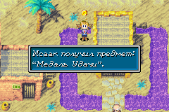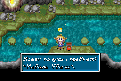 Пройдите к северу города, но не заходите на следующую локацию. Примените Псинергию Ивана Показ, вместо камня появится лужа. Заморозьте лужу и используйте ледяную глыбу, чтобы перепрыгнуть на противоположную сторону. Вам следует проделать это все, пока, не пропал эффект Показа. Если вы по какой-то причине не успеваете – используйте Reveal повторно, до того, как закончилось время первого. Вам надо проделать круг по верхней части города, мимо всех домов, по воротам, под которыми стоят те самые солдаты, что не пускали вас в город. Когда вы придете к тупику, заюзайте Показ – появится сверкающая звездочка в холме. Взаимодействуйте с ней, она окажется кнопкой, которая откроет вам секретную дверь. А секретная дверь приведет вас к хранилищу с шестью красными сундуками. В сундуках вы найдете: Живую Воду, 44 монеты, Дымовую бомбу, Медаль Удачи, Эликсир и Антидот. Круто, правда?