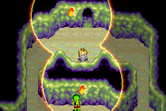 После боя выходите из пустыни через выход на юго-западе. Да, я знаю что мы не проверяли проход за Джинном Марса. Если вы зайдете внутрь, вы попадете в пещеру, на выходе из которой вы увидите огромный розовый вихрь. Если вы зайдете в него, и будете бездействовать, вас унесет на остров Кроссбоун. Это второй и последний способ попадания в это секретное подземелье. Мы ещё вернемся сюда позже и пройдем оставшиеся 6 этажей, когда выучим подходящую Псинергию. В случае если вы зашли в вихрь и использовали Погружение, то на вас нападет Ящерица Темпеста – второй босс этой локации. Но ребята, сейчас это надо проигнорировать и выходить из пустыни Сухалла.