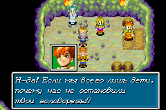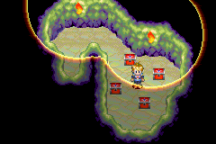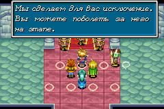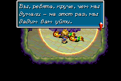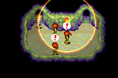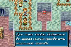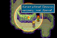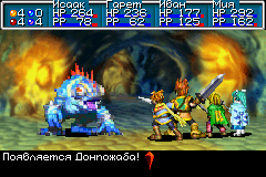 Перед тем, как пройти на следующую локацию, проверьте готовность ваших героев к бою с боссом. Полечите их. Можете, также, приготовить Джиннов к призыву Джаджмента, Метеора и Тора. Оставьте Мию для быстрого отхила. Допножаба имеет вредную привычку исцелять себя на и отравлять своего соперника.