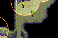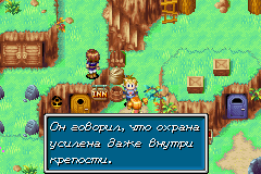Теперь, когда Хэммет спасен, на родину отведен и о самочувствии проверен, вам пора возвращаться в Толби. Чтобы быстрее выйти из Крепости Ланпы, и не потратить при этом ни одного очка РР, когда выйдите из комнаты Донпы, идите вниз и попадитесь на глаза наемнику. Выходите из города через Западную Пещеру Ланпы и бегите в Гондованскую пещеру на юге. Тут нам и пригодится, сделанный нами ранее, короткий маршрут к выходу из пещеры. От Толби (или даже не доходя на него) идите на юг к строению на Мировой карте, похожее на мост.