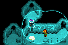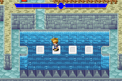 Проходите вперед до не до конца закрытых ворот. Ни в коем случае не нажимайте на кнопку с зеленым треугольником – вы закроете ворота и вам, придется, выйти из пещеры и вернуться обратно, чтобы «ресетнуть» данную оплошность. Тут вам пригодится Псинергия Мороз. Заморозьте лужу, ледяная глыба откроет вам ворота, чтобы вы смогли пройти под ними.