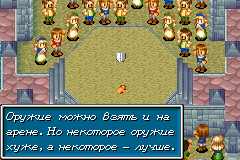 Сохранитесь. Подходите к стражу, чтобы сказать, что Исаак готов к матчу. Вас перенесет в комнату ожидания. Встаньте на, нарисованный на полу, свободный круг в верхнем ряду справа. Вас спросят о вашей готовности. Отвечаем «Да». Пора «помочь» нашему другу.