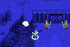 Хэммета держат взаперти в Крепости Ланпы, а проход туда закрывают пара солдат. Как только вы покажитесь им на глаза, они закроют собой вход. Но теперь-то у нас есть Шар Покрова. Поставьте Покров на клавишу быстрого доступа (L или R), в этой части игры, мы будем часто пользоваться её услугами. Если вы все-таки попались им на глаза в первый раз – выйдите и войдите на локацию заново. Покров работает только тогда, когда вы находитесь в тени. Надеюсь, вы заметили разницу между тенью и не тенью в этой игре. Заходите в темную часть карты слева, примените нашу новую Псинергию и аккуратно проходите мимо стражи.