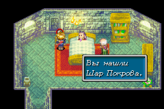 Как только вы закончите свою беседу с Баби, следуйте за ним в его комнату, чтобы попросить у него его Шар Покрова. Это тот самый предмет, что дал старику способность к исчезновению – Псинергию Покров. Он нам пригодится для спасения Хэммета и прохождения четвертой комнаты в подземелье острова Кроссбоун. Для тех, кто проспал момент и не помнит, куда ушел Баби после разговора – лестница вниз, ведущая в его комнату находится на юго-западе тронной комнаты.