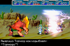 Набираем парочку лишних уровней и возвращаемся к нашему прохождению. После кат-сценки с Иодемом, встаньте в бурю, сразу же кастуйте Погружение, убивайте Ящерицу и идите вниз. Здесь вы найдете сундук с Добрым Браслетом. Вернитесь к входу в пустыню и, теперь, идите на запад. По дороге вам встретится ещё один вихрь с Ящерицой внутри. Спускайтесь дальше к низу карты. Перед вами будет три варианта пути. В каждом нас ждет бой с Ящерицой Торнад. Две дороги вниз ведут в одно место, но лучше выбрать ту, что справа, потому, что ближе к сундуку. Сундуком окажется Мимик с Живой Водою.