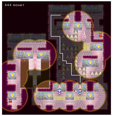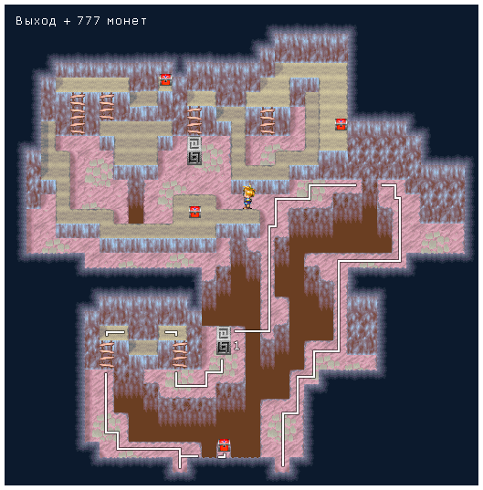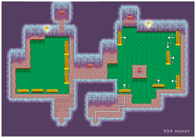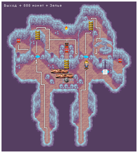 | К выходу и сундукам с, 888 монетами и Зельем | |