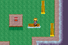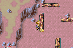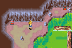 Прыгайте вниз, используя крайне правую горку, чтобы подобрать, спрятанную в сундуке Мяту. Толкайте вниз бревно и возвращайтесь к горкам наверху. Упадите вниз, используя горку посередине, и берите из сундука 1 монету. О да, какое обалденное сокровище. Прыгайте два раза вниз, поднимайтесь наверх и прыгайте вниз, используя последнюю, крайне левую горку. Ещё раз прыгайте вниз, применяйте Вихрь на зарослях и заходите в пещеру.
