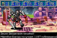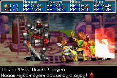 | Подготовьтесь к Призыву Джаджмента, Сайбили (поставьте все 7 Джиннов в режим ожидания), Метеора, Тора и Бореаса. В первом раунде атакуйте Джиннами 4-го уровня. Во втором раунде призовите Сайбили Исааком и используйте обычные атаки другими персонажами. Не забывайте подлечится, если ваше здоровье ниже 100 очков. | ||||
