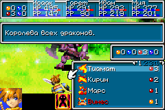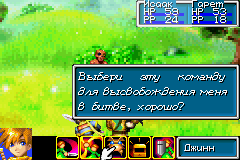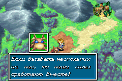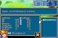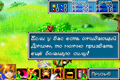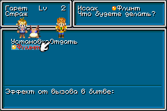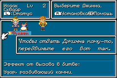 Основная задача Джинна – помогать вам в бою. Если вы хоть раз играли в Golden Sun и участвовали в бою, то вы уже заметили иконку с изображением зверька в Боевом меню. Когда вы выберите эту команду, перед вами появится: