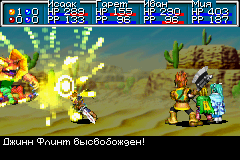 Своего первого Джинна вы получите, как только отправитесь в путешествие и выйдите из Вейла. Флинт, так зовут этого зверька, также, спросит вас о вашем желании узнать больше о Джиннах и их применении. Он расскажет вам как «присоединять» Джинна и Призывать его в бою. Обратите внимание, что при одевании Джинна у персонажа повышаются характеристики или наоборот понижаются, или же добавляются или отнимаются Псинергии. Комбинации Джиннов влияют на Класс персонажа.