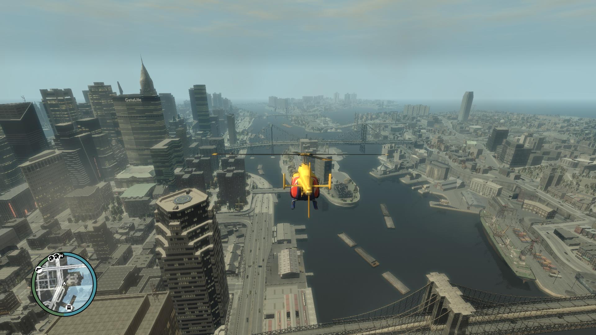 2) Миссии с полётами. Этот тип миссий, из-за которых я в детстве бросил Vice City и чуть не разбил свой компьютер с нецензурными криками. Управление воздушным транспортом там то ли с претензией на симулятор, то ли просто кривое. Но эти миссии были самые ненавистные, как я думаю, для большинства игроков, а в San Andreas этот лётный геморрой возвели до абсолюта… В GTA 4 миссий в воздухе мало в основном дополнительные, исключительно на вертолёте и управление явно полегче (хотя самолеты я не искал желания на них летать не было). Оно вроде бы не стало более аркадным и казуальным, но пилотировать воздушный транспорт стало гораздо приятнее.
