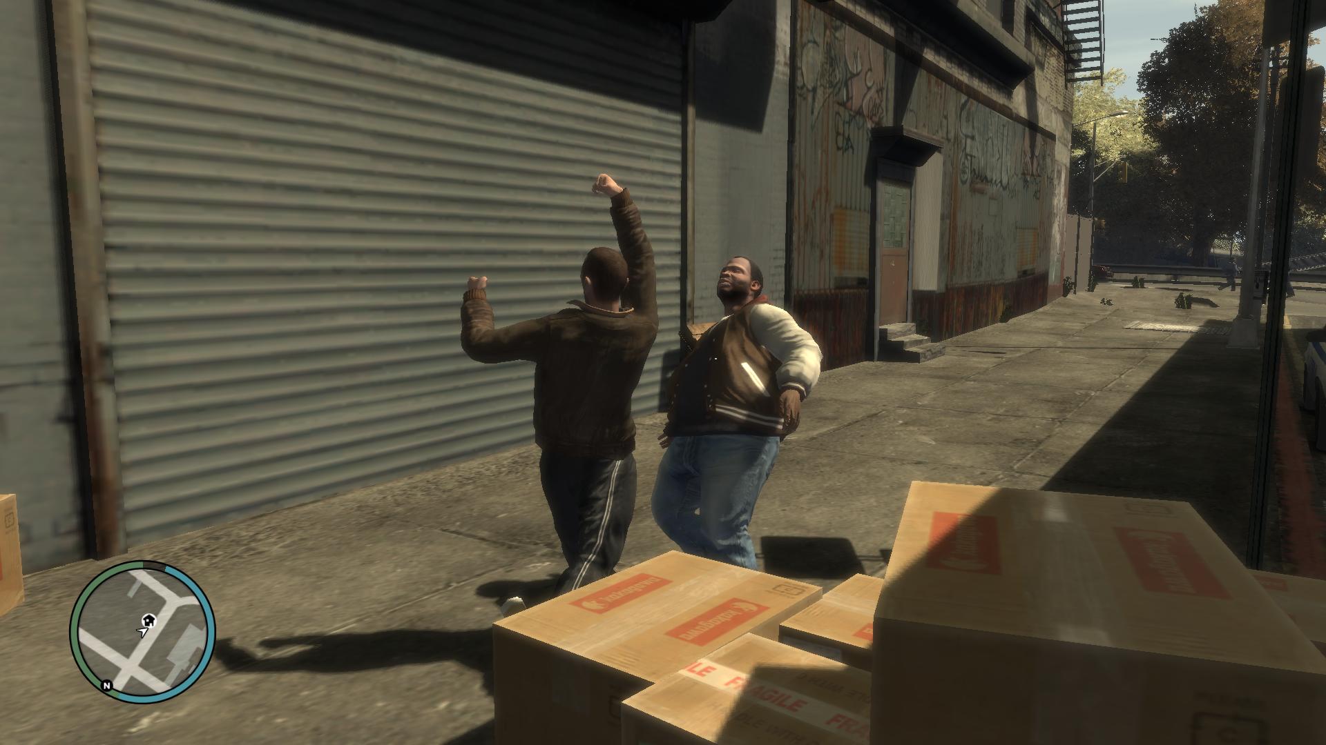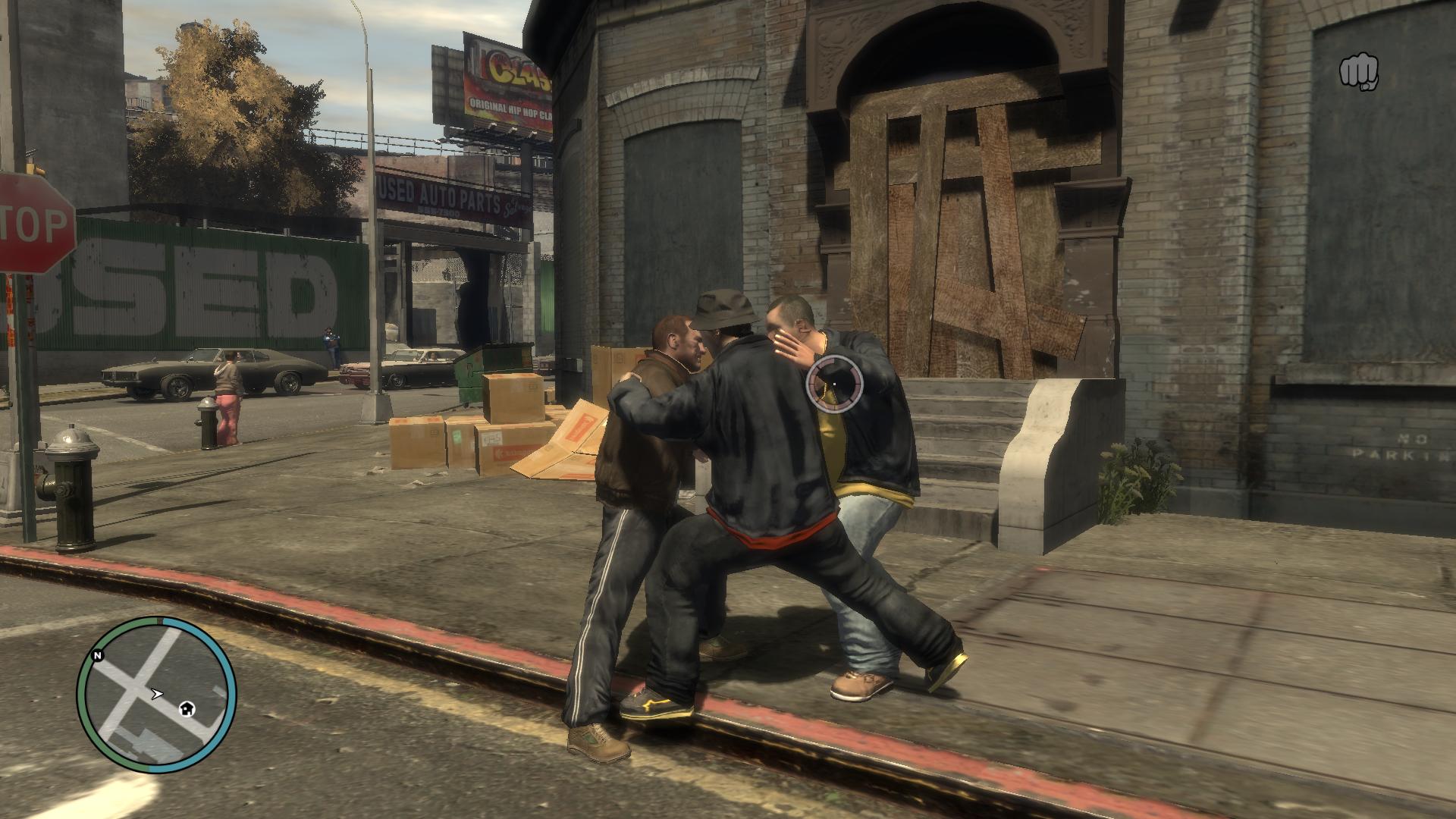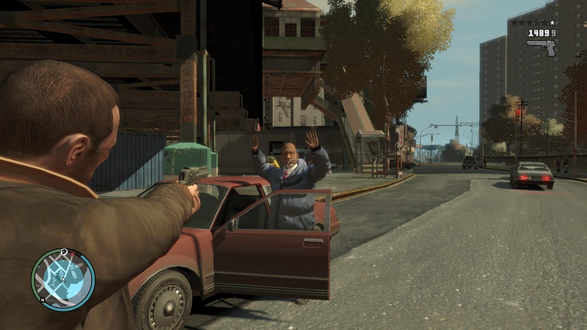 Также, когда игрок выкидывает людей из машины, это происходит более разнообразно и красиво. Водитель может вцепиться в руль, и Нико придётся дать ему с ноги по роже, чтобы выкинуть его из машины, Нико может угрожать человеку стволом, а потом просто вырубить его прикладом. Когда вы садитесь с пассажирского сидения, то водитель не просто выбегает из машины, давая главному герою спокойно занять его транспортное средство, а получает по щщам и с треском вылетает из машины (кстати, девушек Нико не бьёт. Они покорно выбегают из машин, как и в прошлых частях). Чтобы остановить транспорт, не обязательно за ним гоняться. Достаточно выйти на дорогу перед ним и пригрозить пистолетом, на что каждый реагирует по-разному.