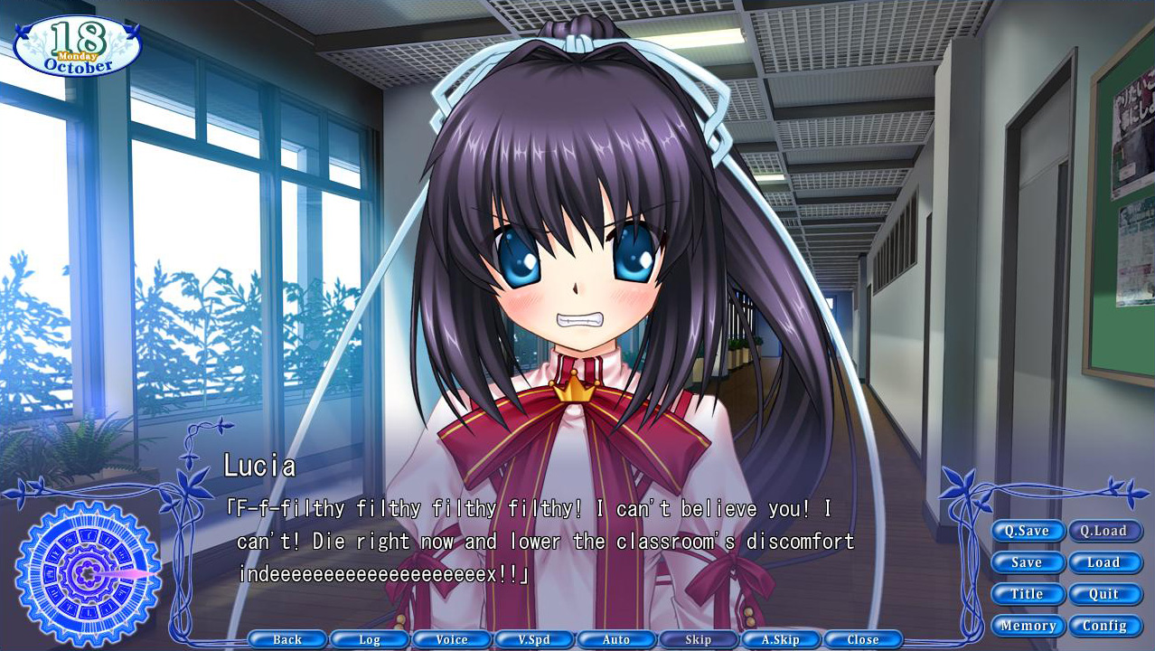 koestl: Grisaia написана несколькими авторами. Руты Фуджисаки Рюуты для Амане и Макины были самыми непростыми, так как он любитель длинных и сложных предложений, которые получались очень запутанными при слишком буквальном переводе на английский язык.