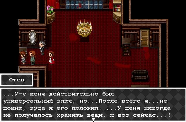 Теперь, когда допрошены все, можем пойти в комнаты справа, они закрыты, но не тут-то было, ведь у нас есть универсальный ключ, который…пропал.