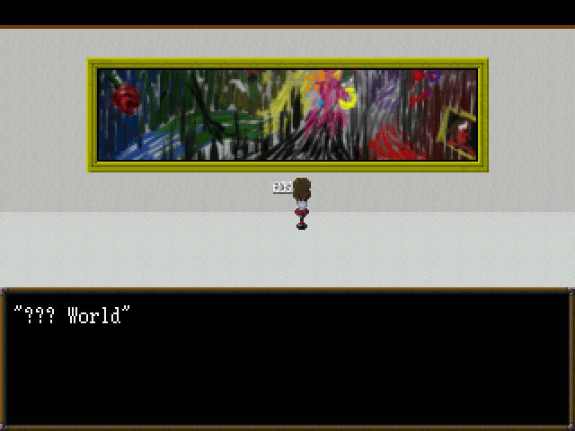 В начале игры Иб со своими родителями приходит в картинную галерею. Они разрешат ей пойти дальше одной и управление перейдет к вам. На первом этаже сейчас делать нечего, так что поднимайтесь на второй. Нам нужно найти большую картину, занимающую всю стену. После того, как вы ее осмотрите, все люди вокруг исчезнут. Спуститесь на первый этаж. На регистрационном столике можно найти блокнот, с помощью которого осуществляется сохранение игры. Чуть левее есть еще один блокнот в нем можно посмотреть управление. Закончив, возвращайтесь к картине. На стене появилось пятно краски. Осмотрите его тут же на полу возникнут буквы, а пятно у картины изменится. Еще раз осмотрите его, спускайтесь на первый этаж и идите направо. Следы на полу ведут внутрь напольной картины. Следуйте за ними.