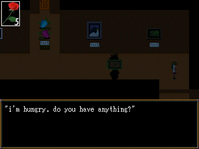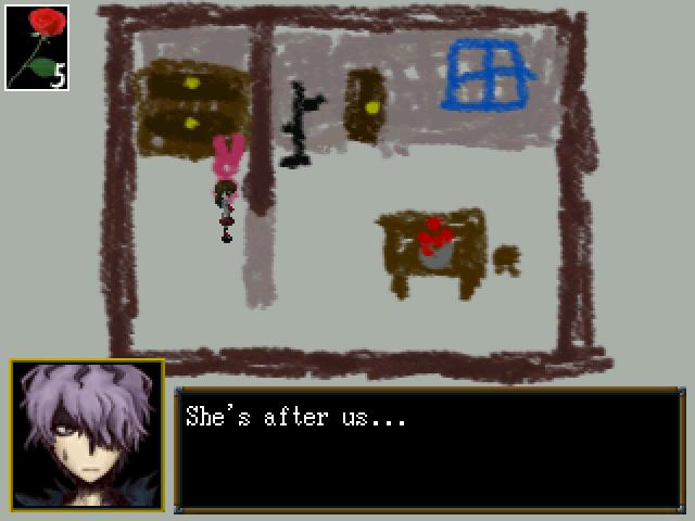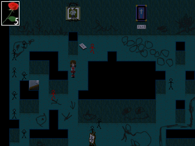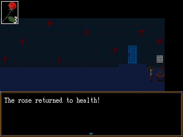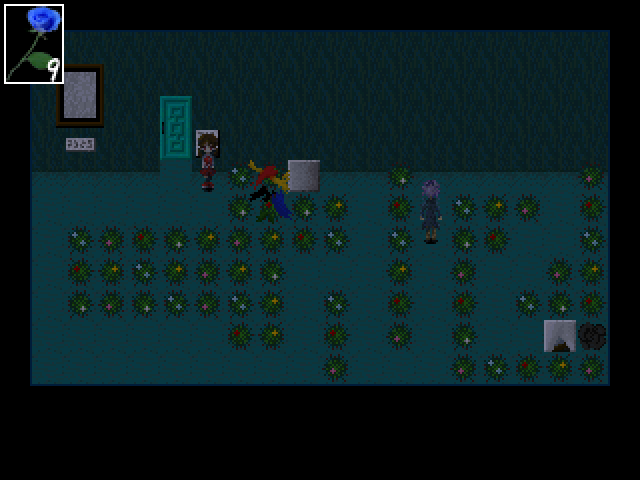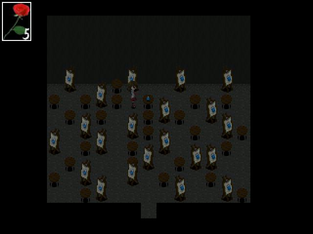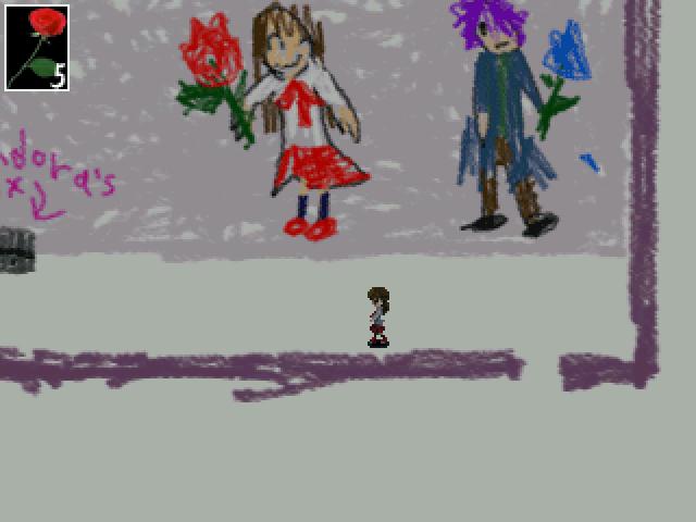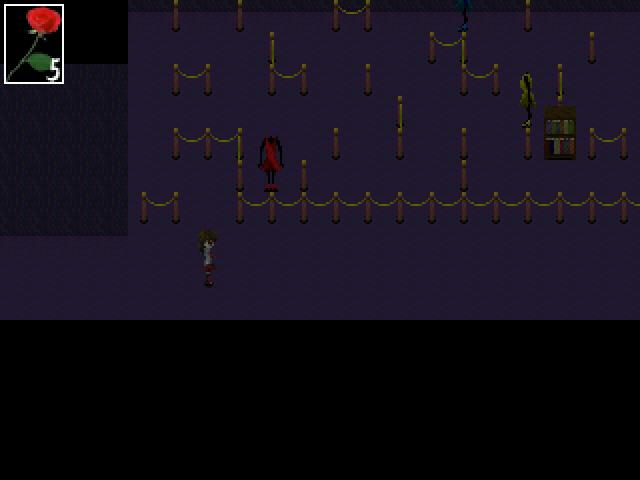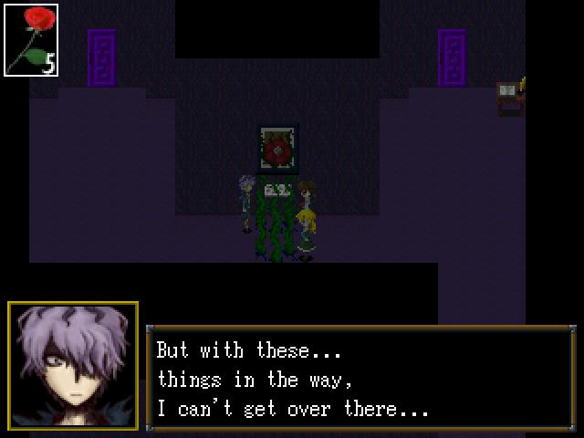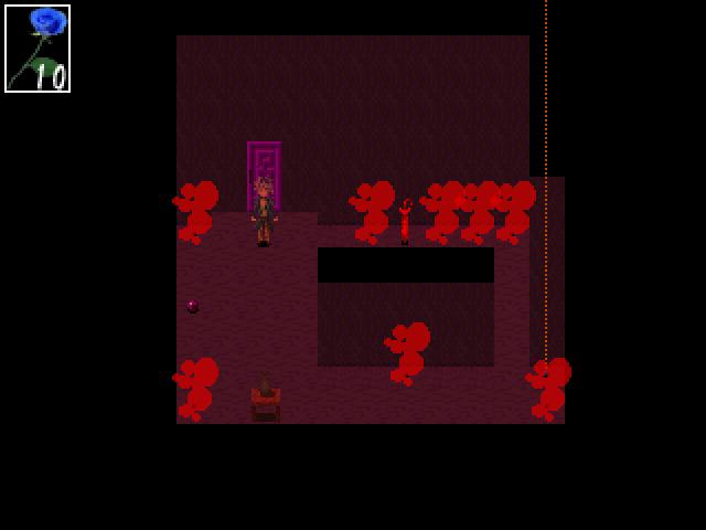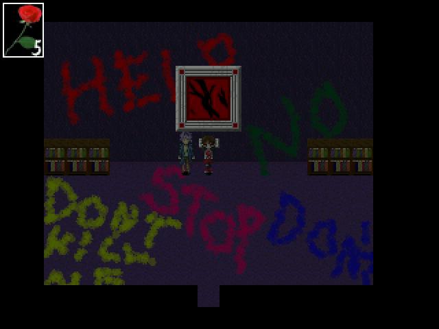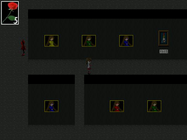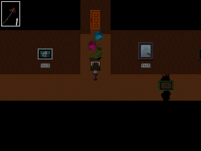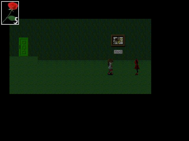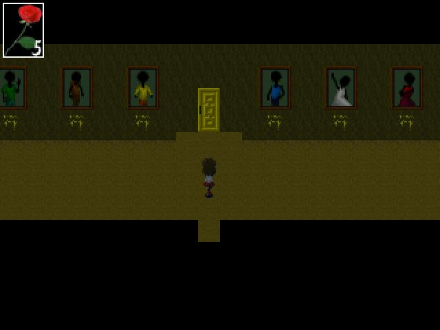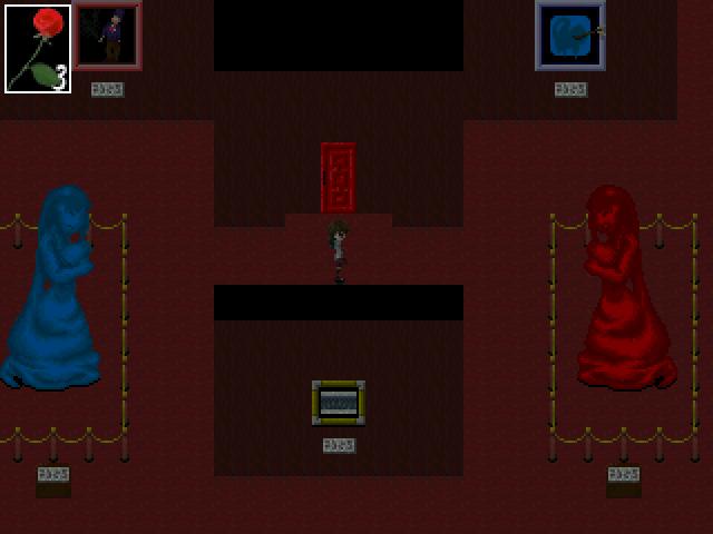Розы теперь спят, и вы можете пройти мимо них, но вот дверь закрыта. Вы могли заметить ключ в одной из комнат, но сама Иб достать его не сможет. Вам понадобится помощь.