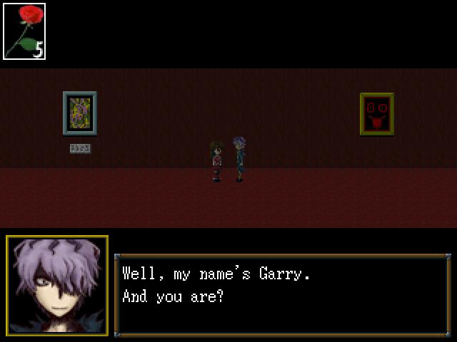 За дверью можно найти блокнот для сохранения и вазу, но не обычную, а голубого цвета. Этой вазой можно пользоваться сколько угодно вода в ней не закончится. Идите по правому коридору. На полу лежит какой-то парень осмотрев его, мы найдем ключ от двери в левой части. Бежим туда. За дверью есть еще одна живая картина. Привлеките ее внимание и выходите из комнаты. Она вылезет из окна, а мы тем временем зайдем обратно. Теперь можно спокойно взять предмет, который она оставила синюю розу. Положите ее в голубую вазу, после чего возвращайтесь к парню. Он встанет и представится нам. Это Гарри, еще один посетитель галереи, застрявший в мире картин. Теперь он пойдет вместе с нами.