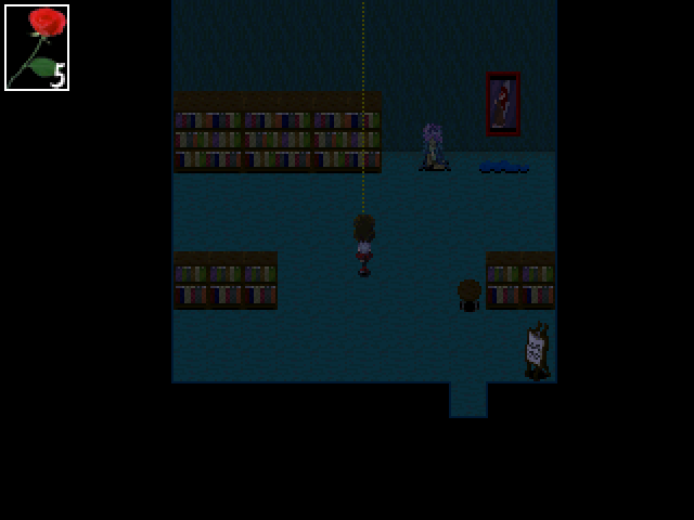 Осмотрите шкаф посередине в нижнем левом углу. После прочтения книги вы получите кусочек картины. Если Иб в галерее одна, осмотрите верхний левый шкафчик и прочтите книгу. Затем проверьте заднюю сторону первого шкафчика на востоке. Осмотрите верхний правый шкаф, стоя сбоку от него. И наконец, проверьте мольберт в углу комнаты. Выберите первый вариант, и в комнате появится шнур. Если дернуть за него, вас перенесет в другую комнату.