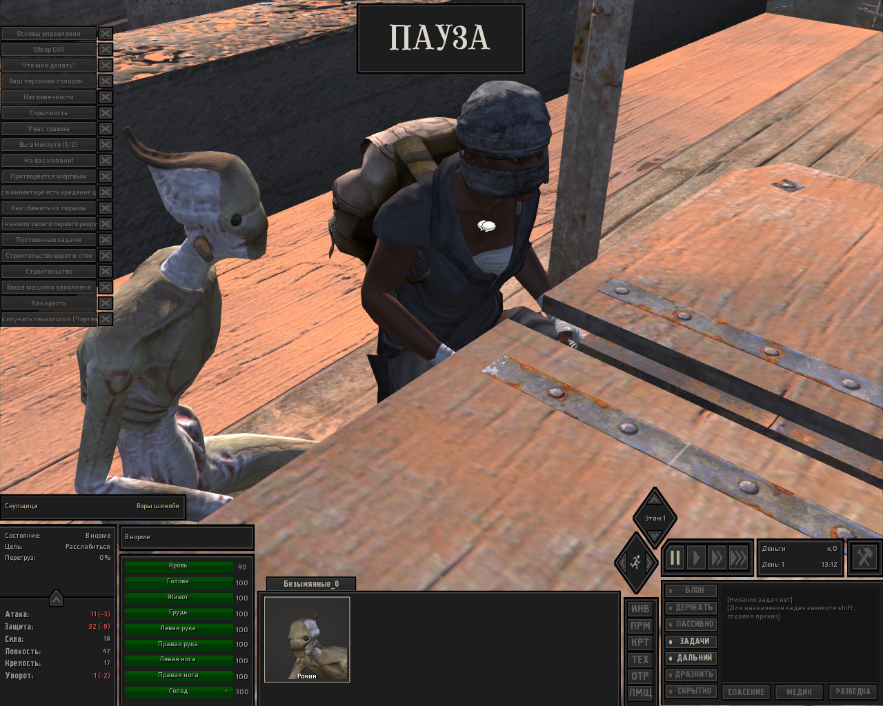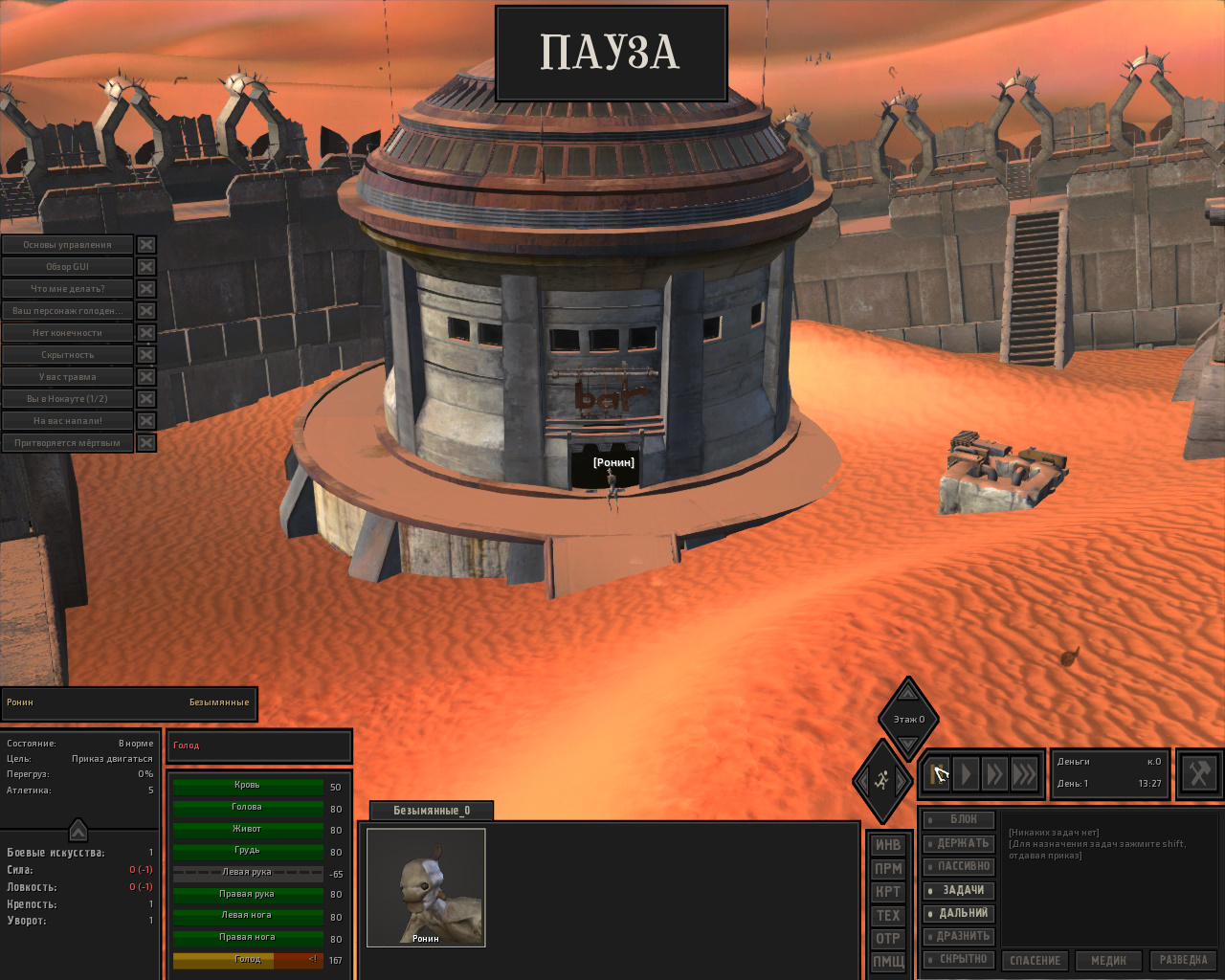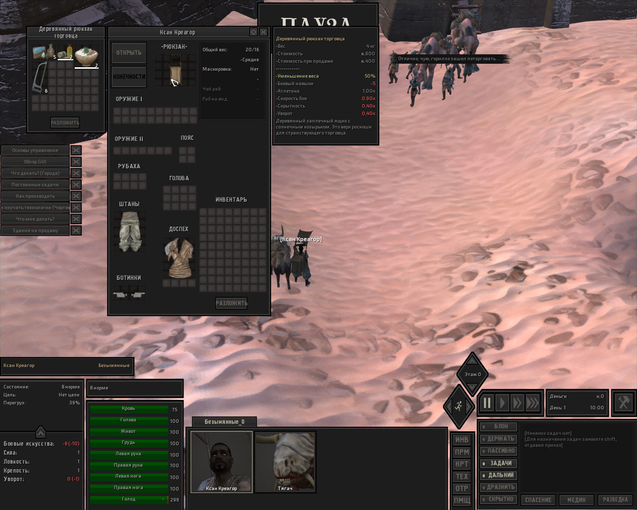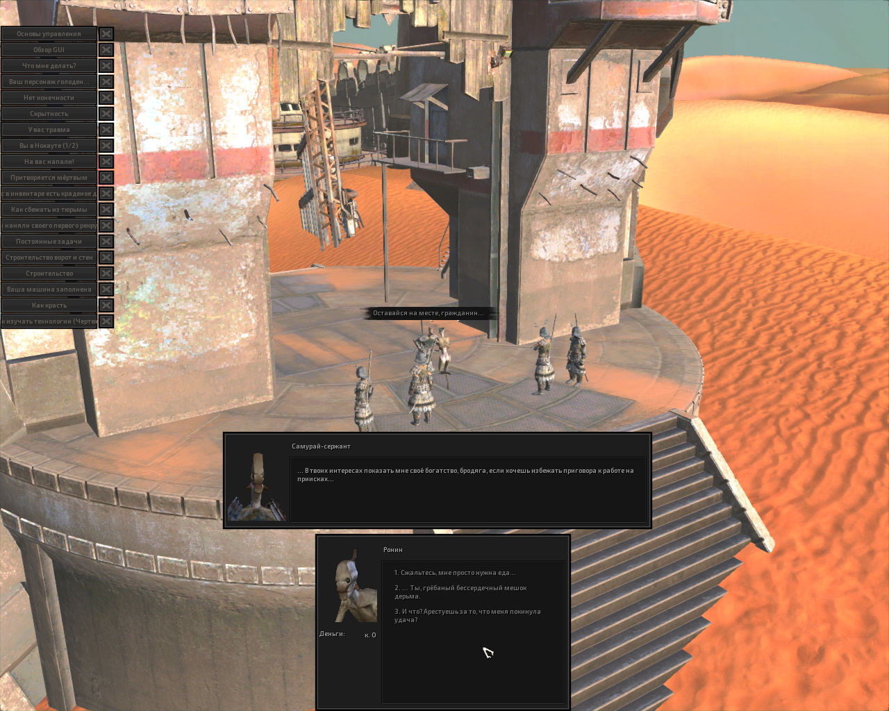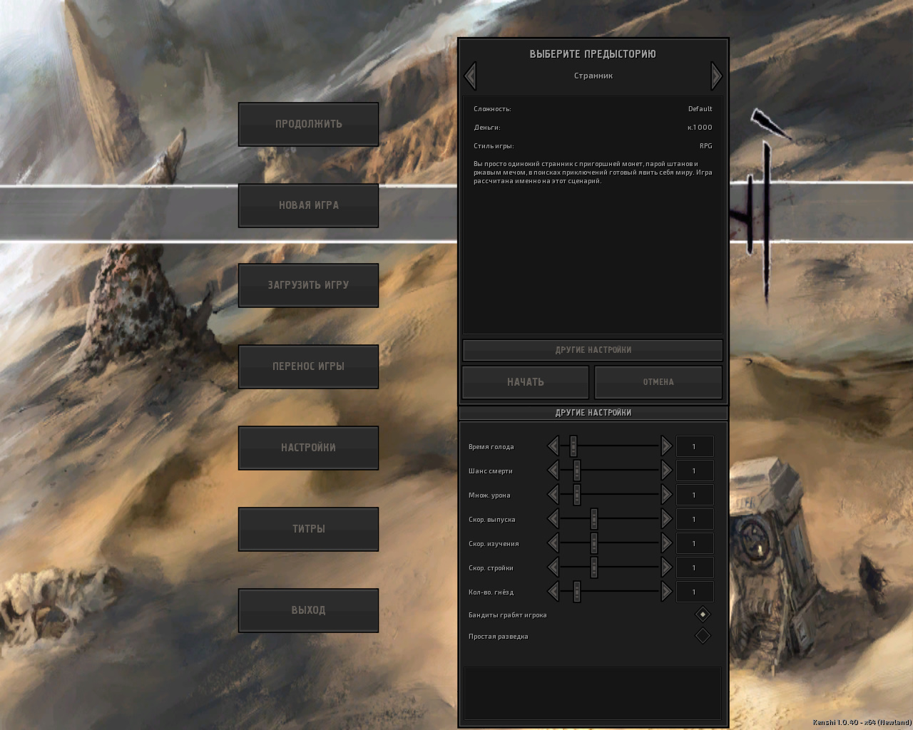 В данном разделе, при помощи рекомендуемого мной выше игрового старта «На дне», я на собственном примере покажу вам некоторые базовые вещи, а также расскажу о нескольких геймплейных трюках, которые помогут пережить первые (самые тяжёлые) игровые недели и сделают ваше дальнейшее прибывание в мире Kenshi чуточку комфортнее. Итак, поехали!