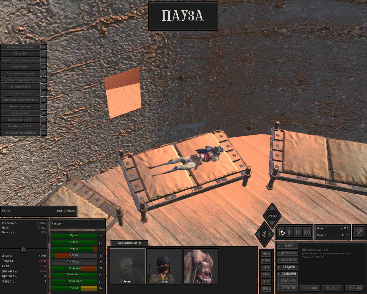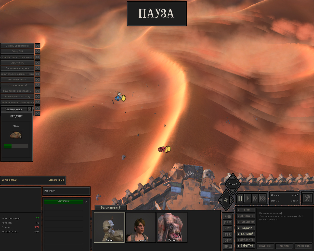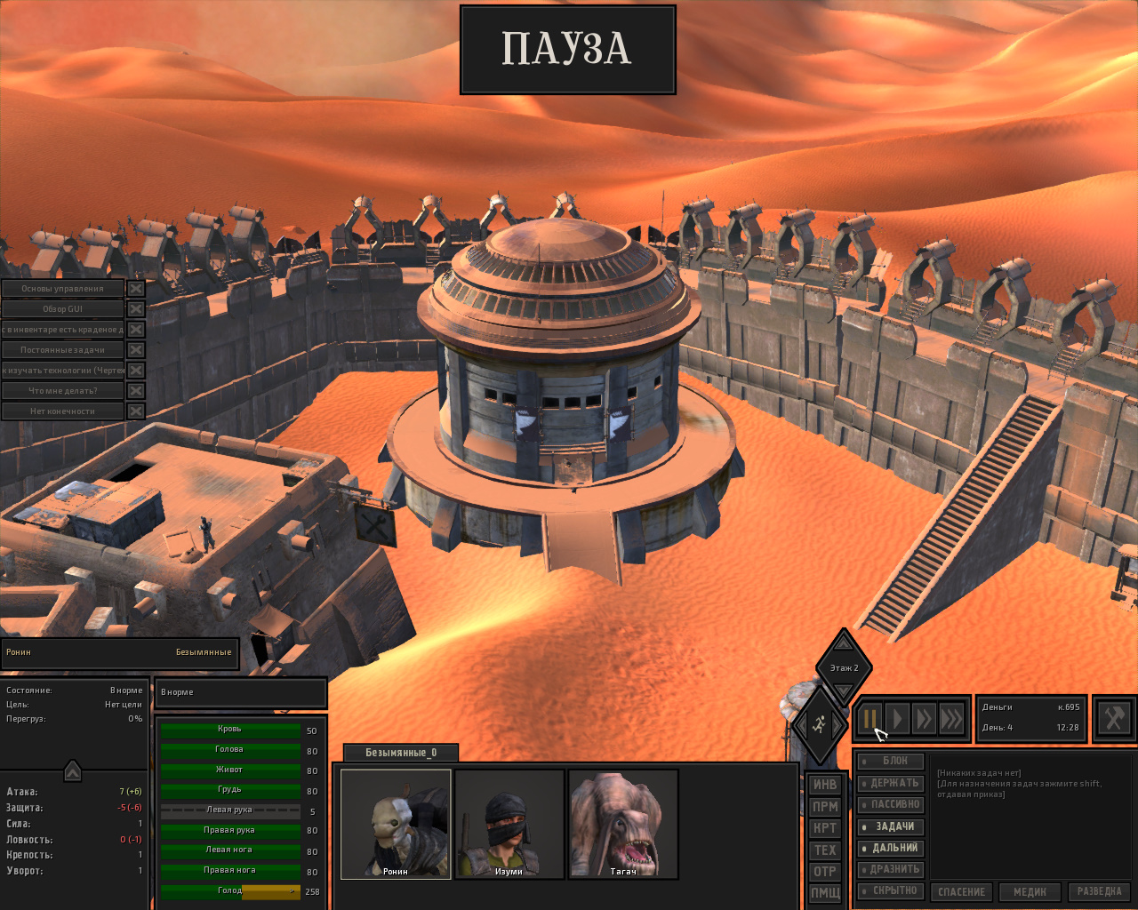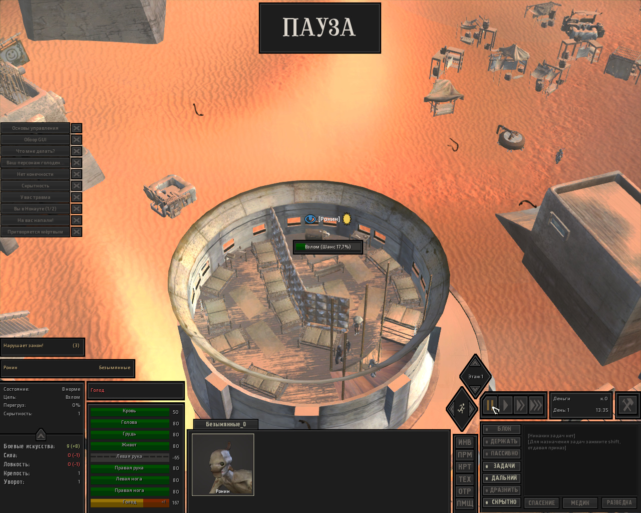 В данном разделе, при помощи рекомендуемого мной выше игрового старта «На дне», я на собственном примере покажу вам некоторые базовые вещи, а также расскажу о нескольких геймплейных трюках, которые помогут пережить первые (самые тяжёлые) игровые недели и сделают ваше дальнейшее прибывание в мире Kenshi чуточку комфортнее. Итак, поехали!