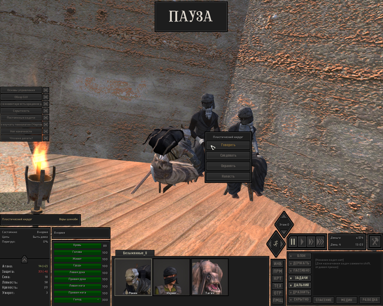 Даже если в дальнейшем, вы не планируете отыгрывать роль «романтика с большой дороги» и собираетесь зарабатывать исключительно законными методами, становление одним из «членов» организации «Воров Шиноби» (в отличии от той же «Торговой Гильдии») не несёт в себе никаких негативных последствий или какого-либо понижения уровня отношений, с любой из населяющих мир Kenshi фракций. А своим соратникам, эти ребята предоставляют широкий спектр весьма полезных услуг. Так например сразу после вступления, любой раненый член вашего отряда, совершенно бесплатно может получить доступ к одной из пренадлежащих гильдии кроватей, что позволит на целых 800% быстрее восстанавливать потерянное здоровье, а бывшие рабы и преступники, согласившиеся стать членами вашей партии, за головы которых назначена награда, могут воспользоваться услугами местного хирурга, способного до неузнаваемости изменить их внешность и таким образом, существенно снизить шанс на узнавание и арест охранной города.