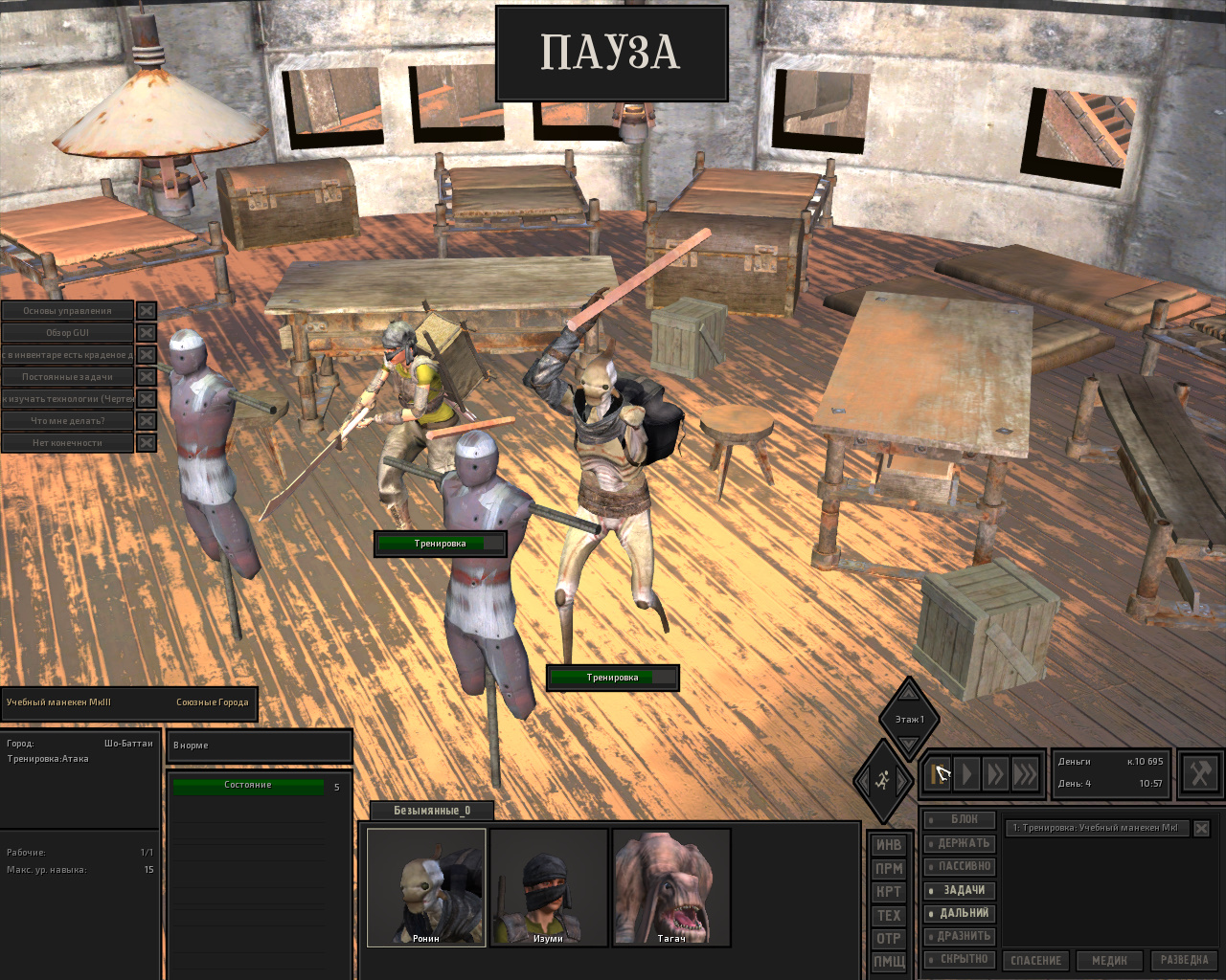 И что самое важное, на одном из этажей здания, в котором располагается гильдия, стоят бесплатные «тренажеры» и «манекены», позволяющие вашей партии в тепличных условиях повысить до приемлемого уровня такие полезные навыки, как «атака», «взлом», «воровство» и «убийство». Правда, из за специфики работы, навык атаки гораздо выгоднее и эффективнее качается при использовании манекенов, находящихся в бараках городской стражи. Но всё же имейте ввиду, что за использование последних, вашим подопечным может прилететь очень болезненная «плюха», в виде штрафа и тюремного срока, поскольку вы фактически используете в личных целях чужую частную собственность, т.е. совершаете преступление.