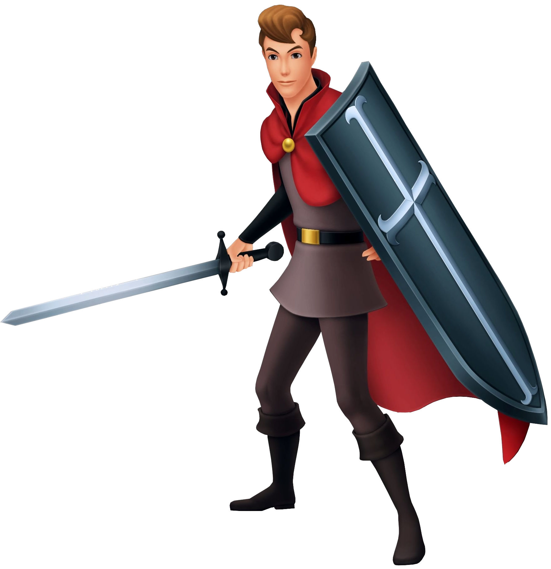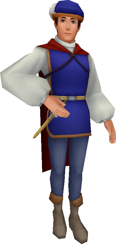 Принц соседнего Королевства однажды встретивший поющую Белоснежку, плененный ее красотой не смог позабыть и позже вернулся за ней в замок. Узнал, что она была отравлена ядовитым яблоком впав в глубокий сон. После долгих поисков смог ее разбудить первым поцелуем. |