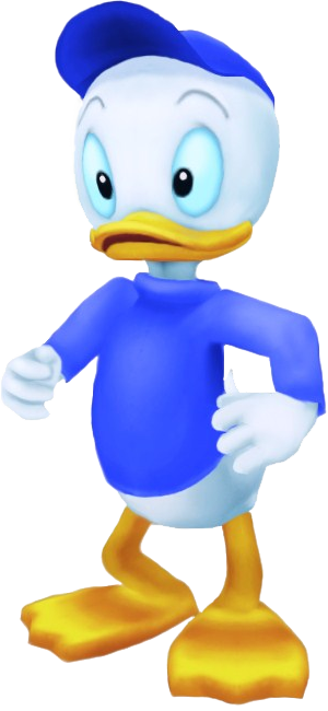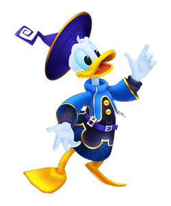 Маг на службе Короля Микки. Вместе с Гуфи незамедлительно направился к башне Йен Сида когда узнали, что их король пропал без вести в процессе своей подготовки. Персонаж с весьма трудным характером, временами заносчивый и упрямый, но ради короля готов пожертвовать всем. Дональд вспыльчив и из-за этого часто в прямом смысле притягивает неприятности, но едва ли вы где-нибудь найдете такого же смельчака. Дебютировал на широком экране в The Wise Little Hen (1934 год). |