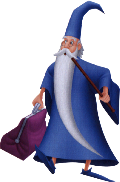 Великий колдун путешествующий по миру с волшебным мешком. Хранитель необычной книги найденной Террой. Мгновенно признал в Терре коллегу-путешественника «по миру» и разрешил воспользоваться необычной книгой. Дебютировал на широком экране в The Sword in the Stone (1963 год). |