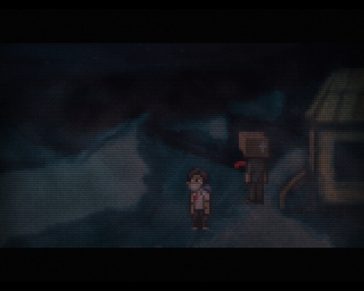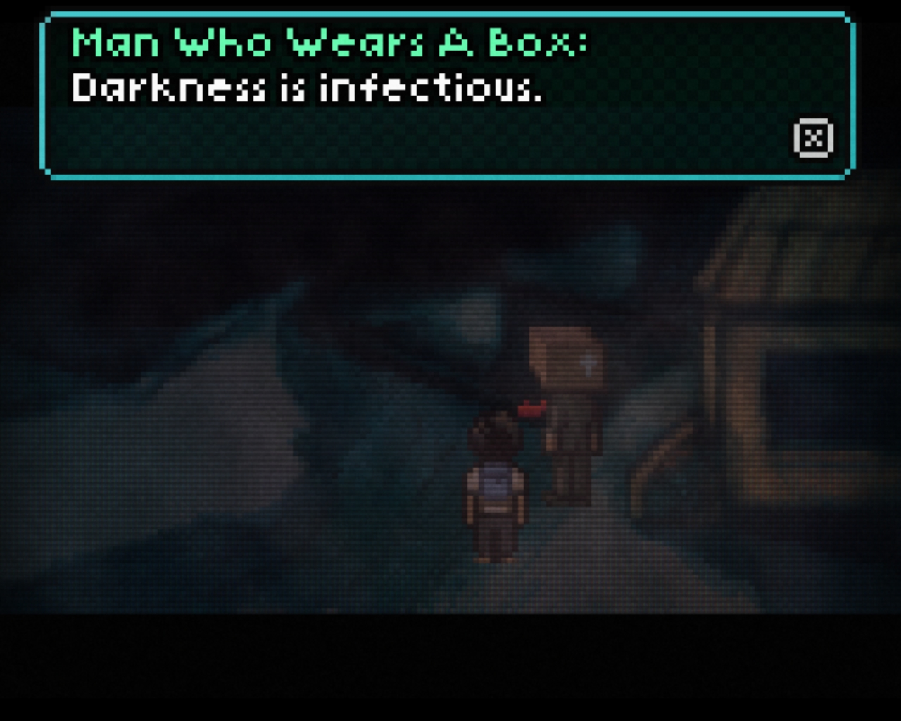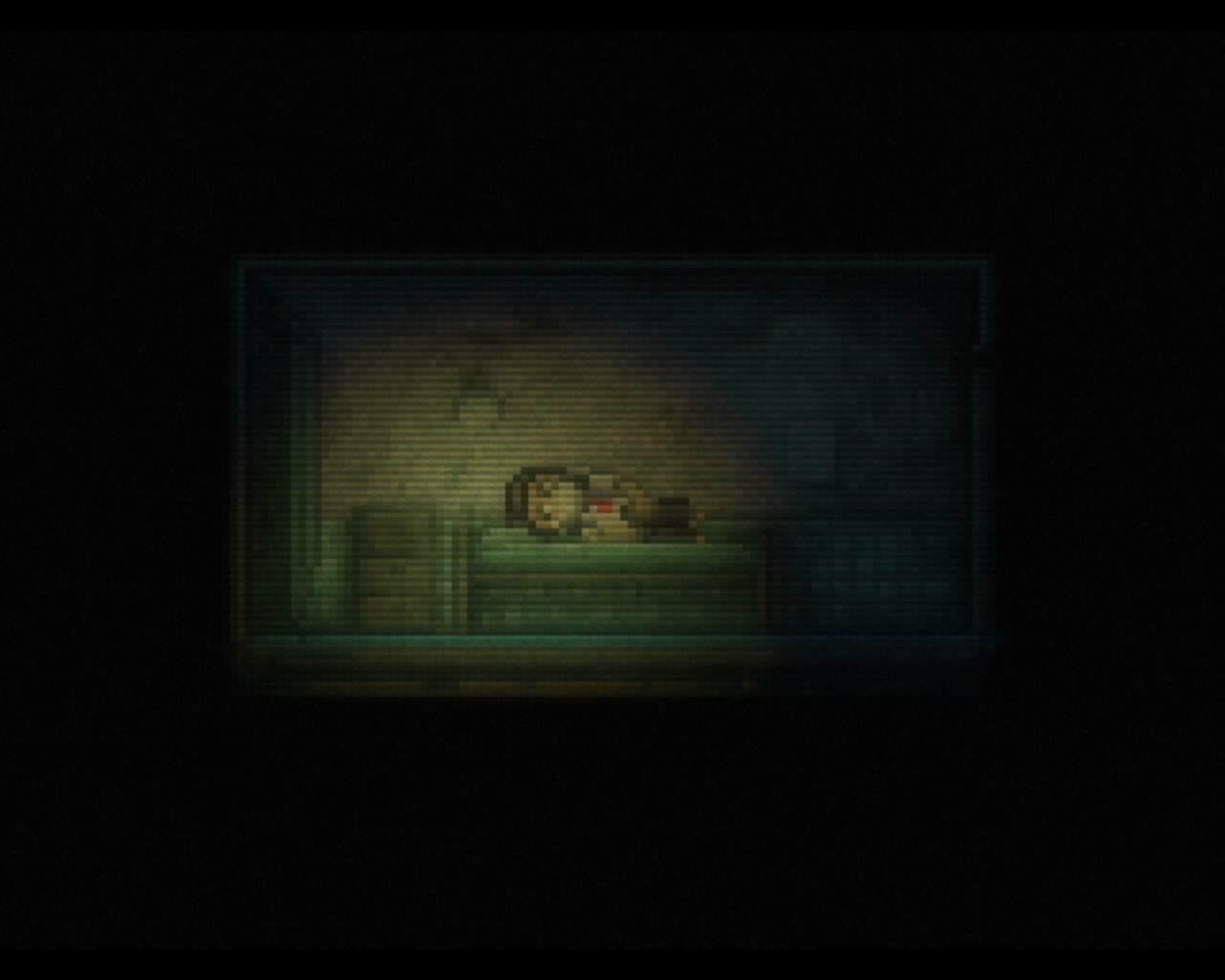 Рядом с кроватью можно найти зеленую таблетку. Она вызывает сонливость, но самое главное – уснув, герой увидит один очень интересный сон. Поговорите с человеком с коробкой на голове. Если у вас закончились батарейки или еда, он вам одолжит немного припасов. Зеленые таблетки хорошо влияют на психику. И еще – если у вас однажды закончатся батарейки посреди опасной зоны – вас автоматически перенесет сюда, но только один раз.