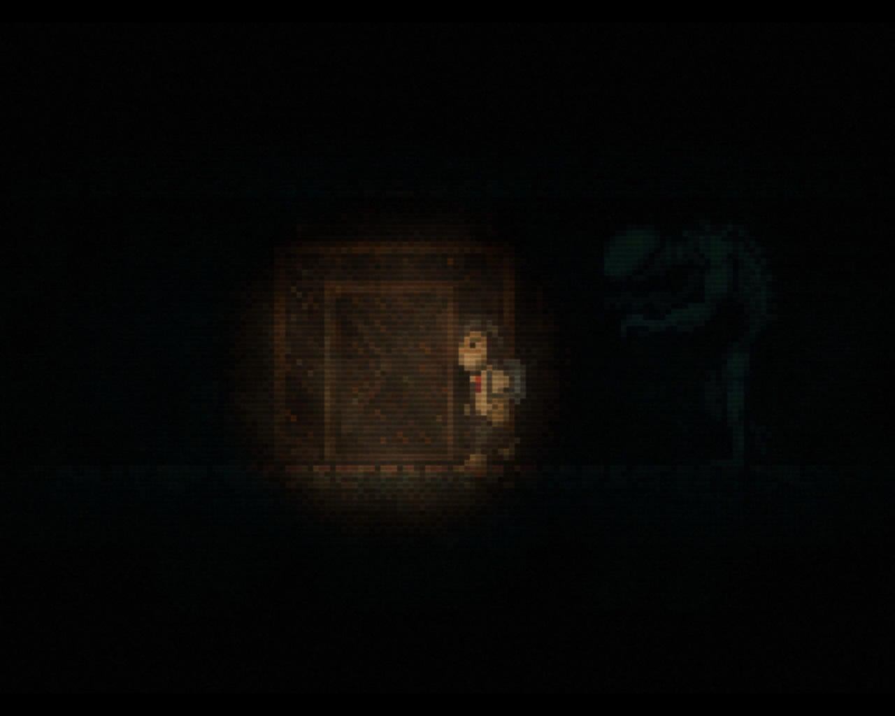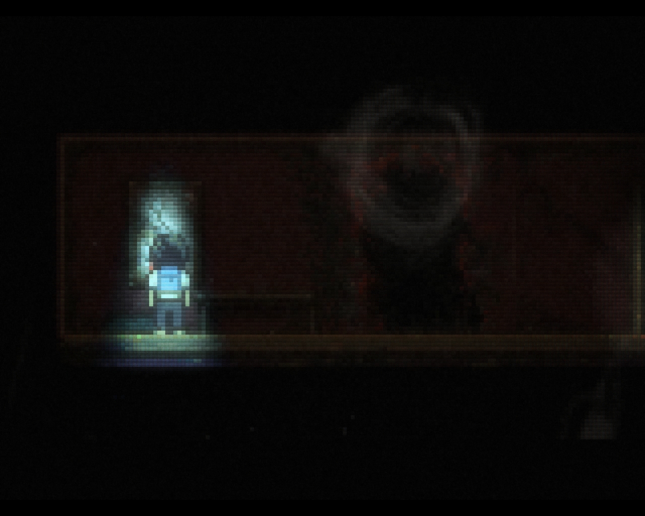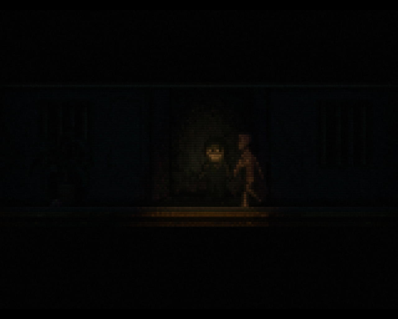 Прослушайте небольшой монолог героя, и управление перейдет к нам. Идите по коридору направо, в следующую комнату. Возьмите со стола кофе и выпейте. Нас перенесет в еще один темный коридор. Продолжайте идти дальше. Внезапно свет выключится, и перед нами окажется монстр. К счастью, он нас пока еще не видит. Вам нужно обойти его и при этом остаться незамеченным. Дождитесь, пока он пройдет направо и остановится, аккуратно дойдите до углубления в стене и спрячьтесь. Когда он пройдет мимо вас и остановится слева, выходите. Заходите за шторы и поговорите с девушкой, после чего герой получит в свое распоряжение карманный фонарик.