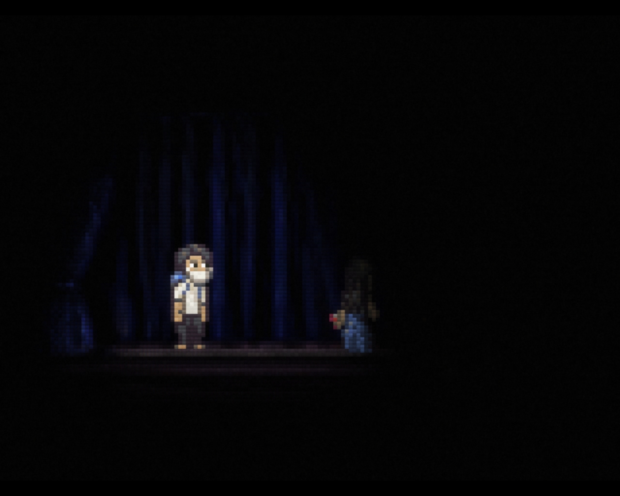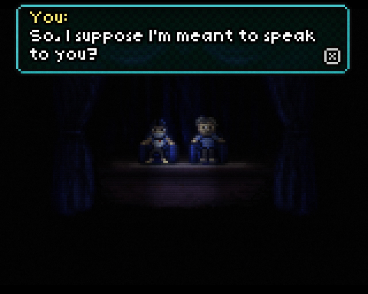 Похоже, что эти двое совсем не беспокоятся о монстрах поблизости. Вы можете поговорить с ними и попытаться убедить, что вокруг все очень плохо и надо бы спасаться, а не вечеринку закатывать. Выбирайте разные варианты ответа. К сожалению, слушать они вас не будут, но зато это хорошо повлияет на психику героя.
