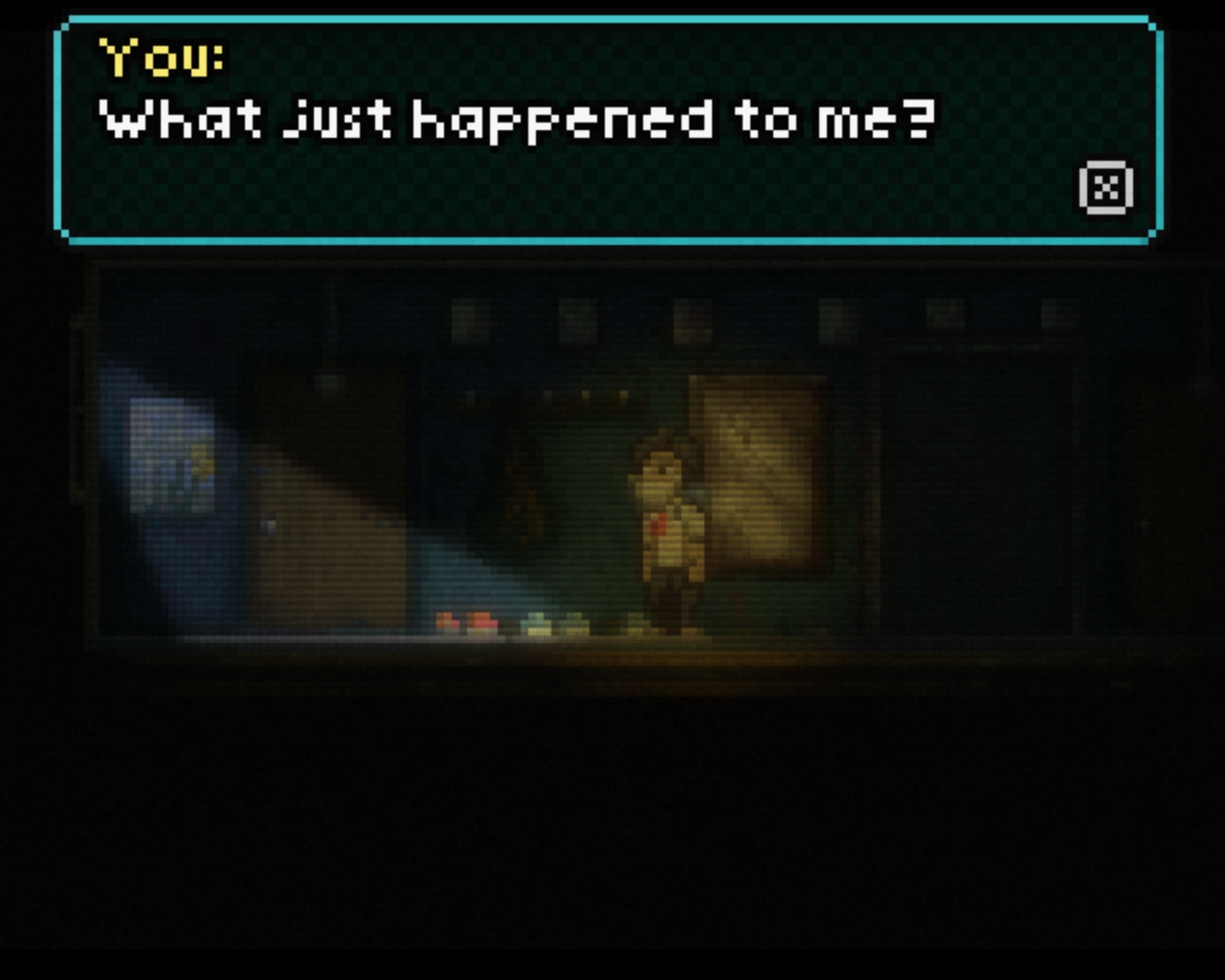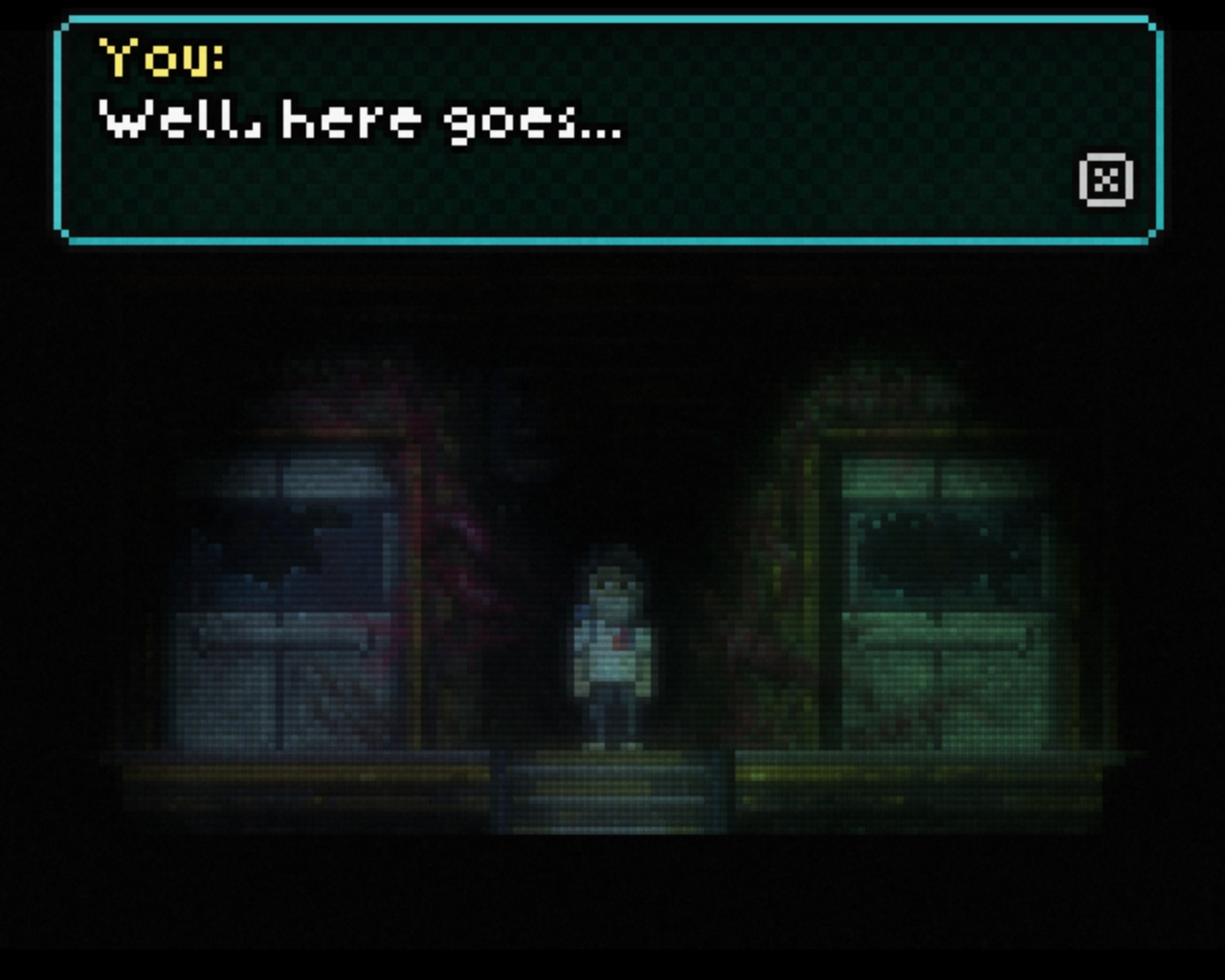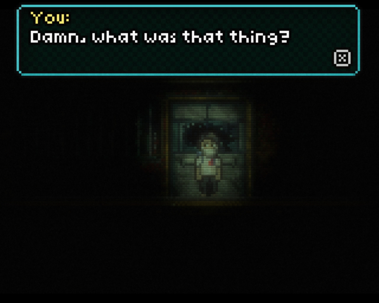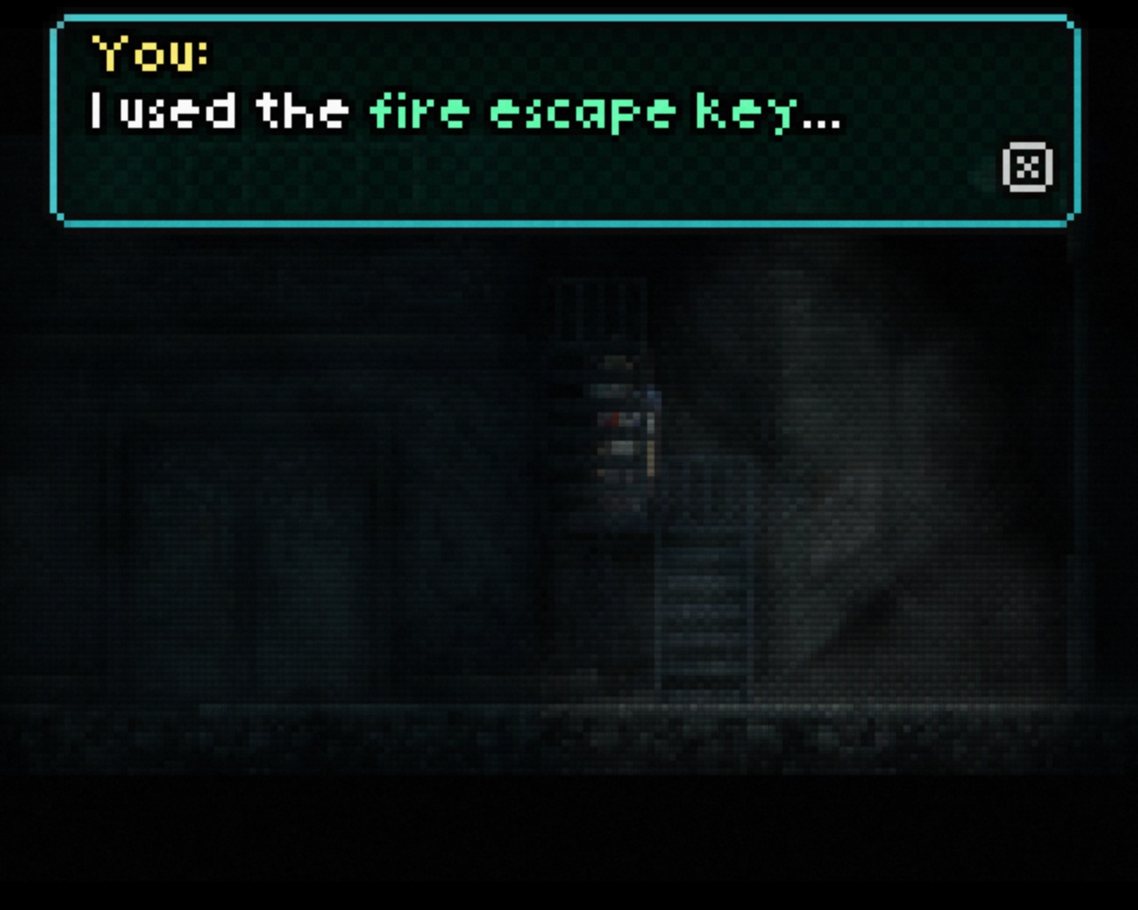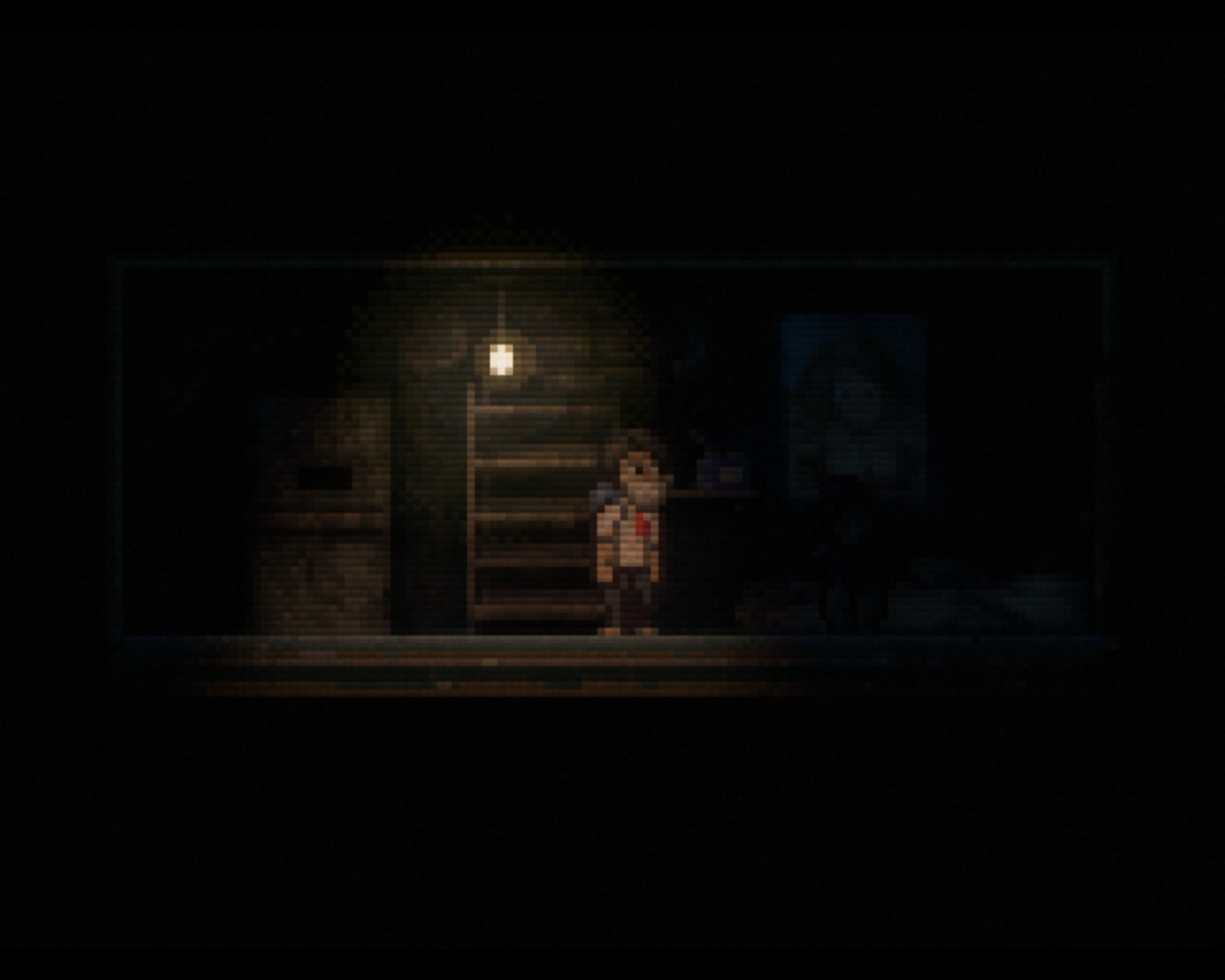 Двигайтесь на восток. После короткого разговора с незнакомцем, на полу перед вами окажется банка газировки. Однако вместо колы, внутри вы найдете [ключ от лестничной площадки]. Также поблизости теперь можно найти патроны. Вернитесь домой через зеркало, пополните запасы мяса и направляйтесь к закрытой двери в коридоре. На лестничной площадке подберите патроны. В подвал герой идти не хочет, так что открывайте дверь рядом.