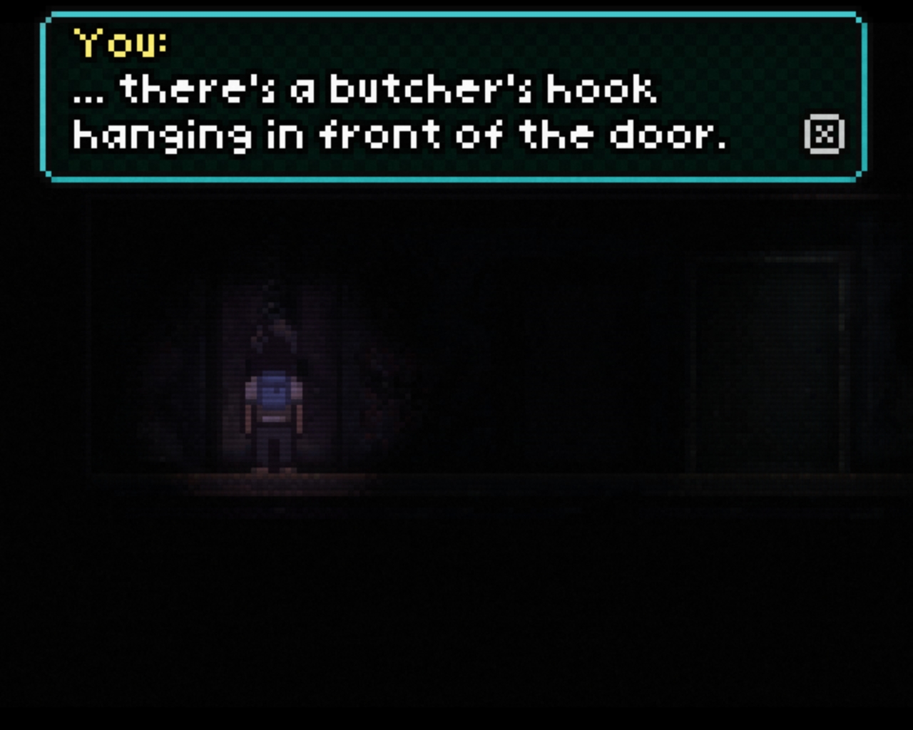 С собой можно брать только шесть кусков, но зато вы можете сколько угодно пополнять запас на кухне и еще в одном месте, которое мы посетим позже. Еще кое-что – это мясо есть нельзя, но можете предложить это сделать своему персонажу, чтобы ухудшить ему психику. Забавно, что он по-разному реагирует на это предложение, в зависимости от своего состояния.