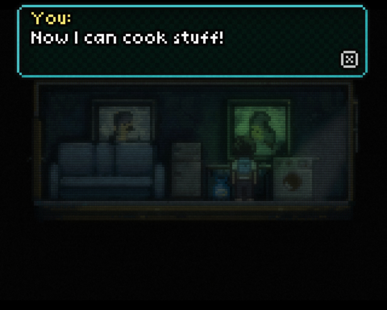 Идите на кухню своего номера и используйте рядом с диваном Gamejoy. Наш протагонист сядет играть в приставку – это улучшит его психику. Однако вам понадобится батарейка для использования.