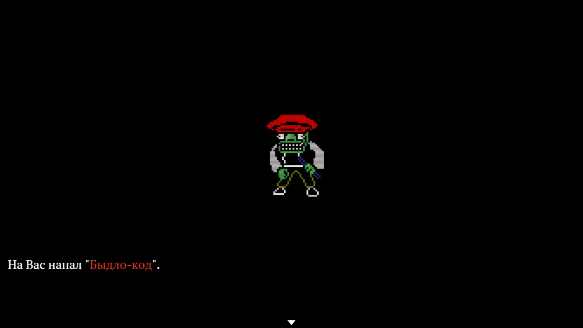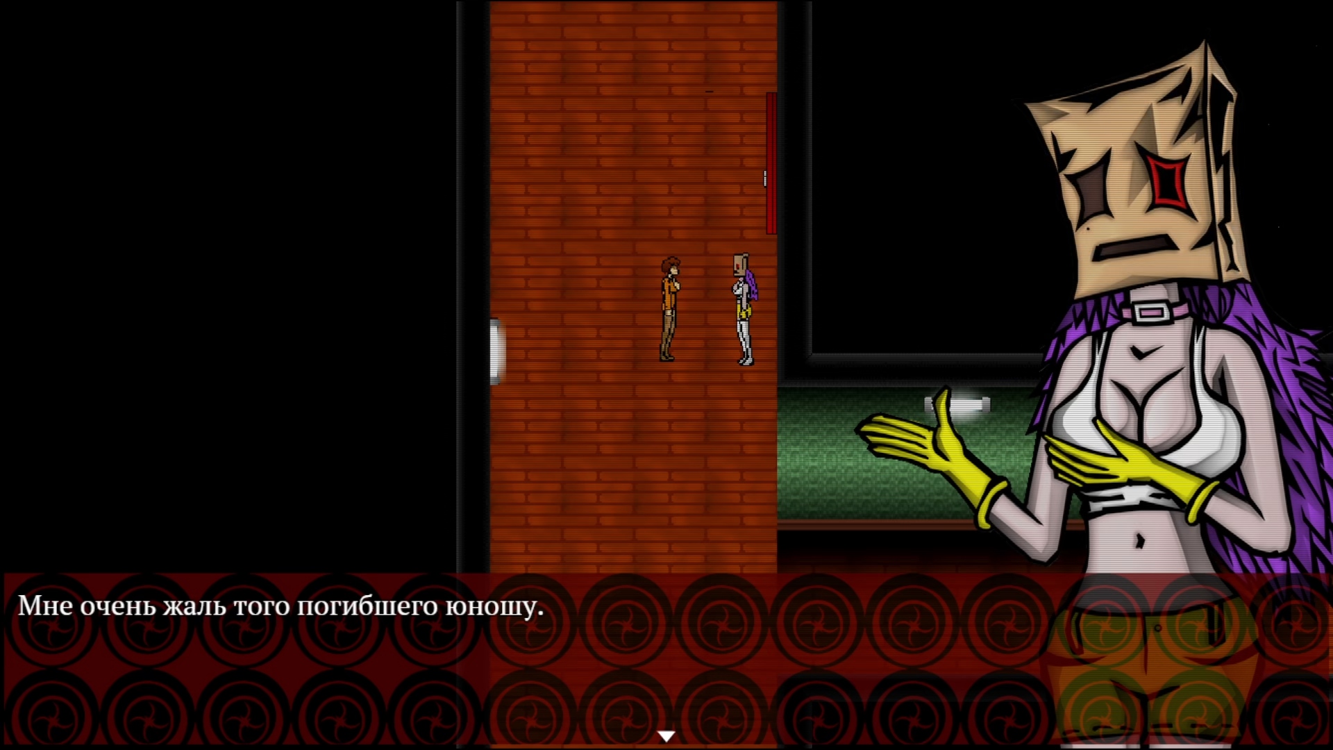 И когда расследование приобретает огнестрельные черты, а игра переходит в боевой режим, у меня возникает два вопроса: «это точно RPG Maker?» и «как движок вообще не развалился от такого количества надстроек?» Стычки с порождениями оккультных практик Кровавого Возрождения по всем пошаговым традициям переносят на отдельный экран, — однако дальнейшие действия менее очевидны. Хвала сарделькам, что тут есть обучение. Кстати, знакомьтесь. Нашего гида зовут Буни, и у неё по каким-то причинам голова живёт отдельно от тела. Удивительно? Ничего, скоро удивляться не останется сил. Краткий ликбез по игровым механикам, впрочем, не помешал мне окочуриться в первом же бою и отлететь на начальный экран… ДЖВАЖДЫ. Второй раз я отлетел, когда начал проверять разные клавиши и узнал, что F5 моментально бросает в главное меню. Карыч балбес. В общем, прохождение пролога сильно затянулось.