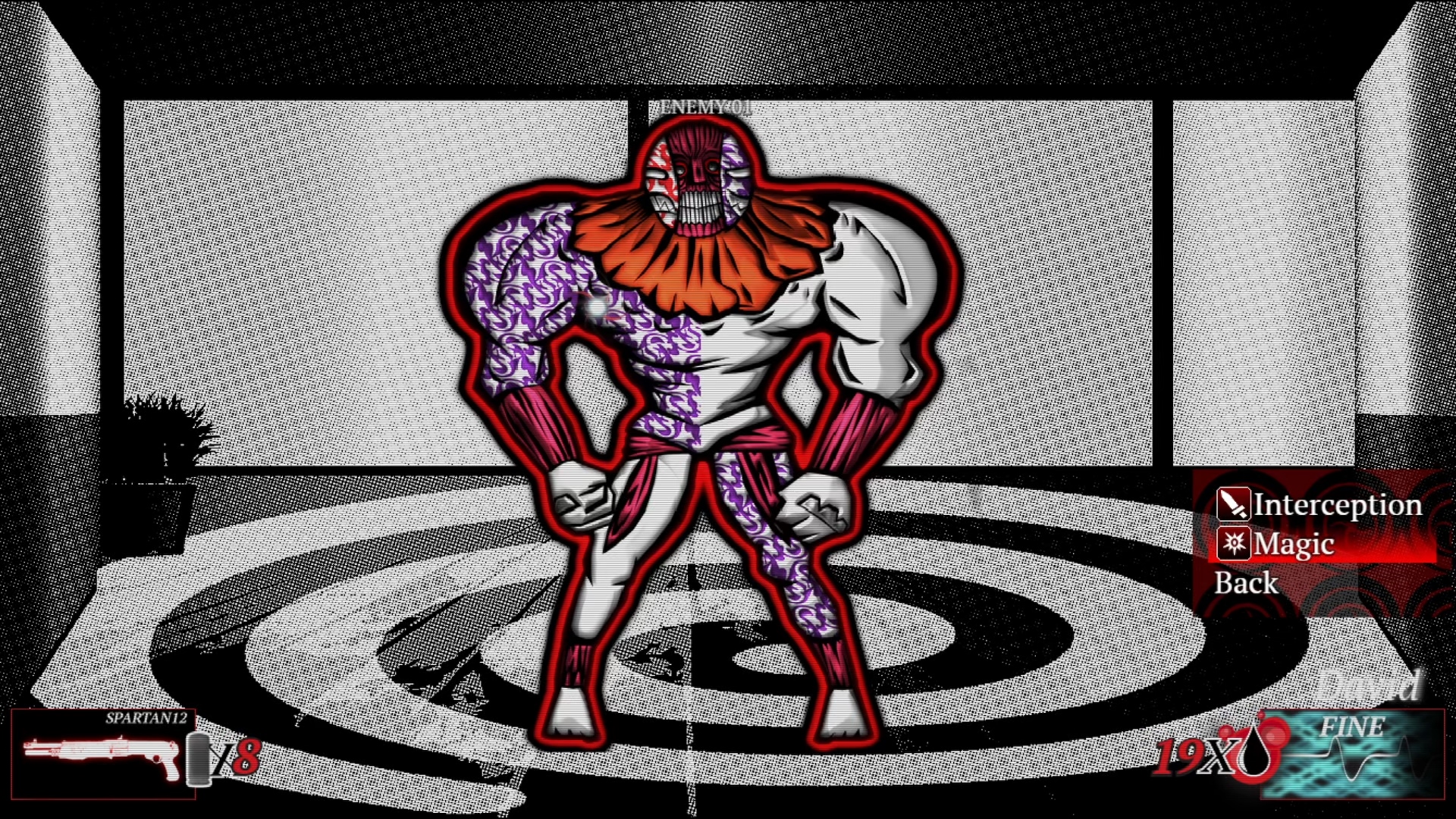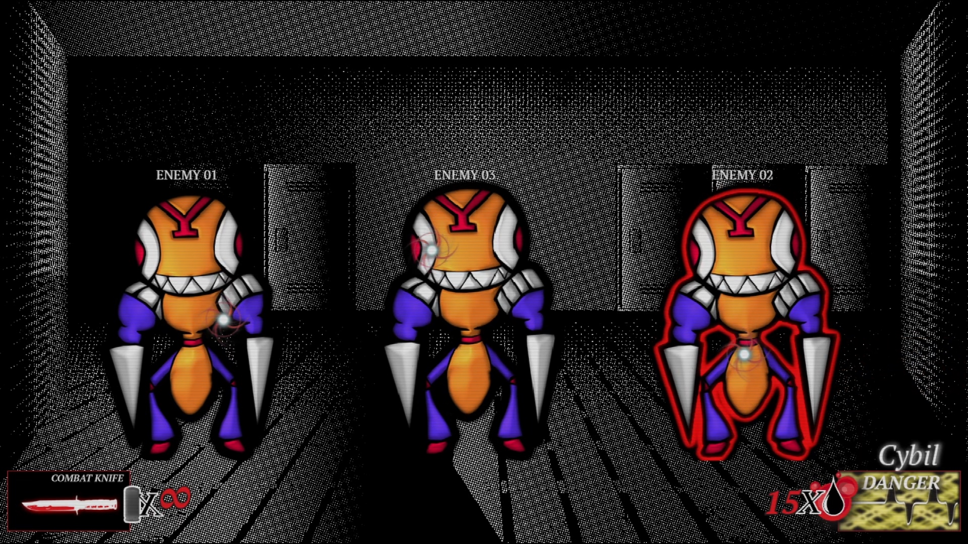 Ну и наконец, во время пошагового режима можно занырнуть в бездонную походную сумку и выудить из неё то, что облегчит дальнейший бой. Например, поменять ствол, за что у вас даже ход не отнимут. Чаще всего на смену оружия толкает местная система магии. Закончилась кровь — хватаем нож. Крови в избытке — меняем нож на огнестрел. Излишек боезапаса тоже периодически надо в монстрячьи тела сгружать. Больше 99 патронов для автомата или дробовика всё равно в карман не влезут, и удачи потом вспомнить, в каком из миллиардов шкафчиков они лежали.