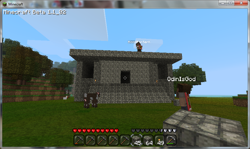 Живности, кстати, было очень много: овцы и свиньи лезли в здание, мешались строителям и даже пытались прыгать из окон, видимо, в знак протеста против таких «злых» строений. Но, к счастью, с нами был Odin, который быстро смекнул в чём дело и молнией разогнал бедных зверушек… Шутка, конечно, Odin решил не показывать нам молнию и просто предал строению более гармоничный вид. Животные остались довольны=)