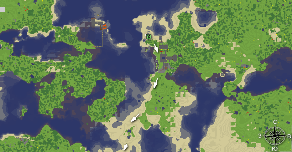 Сегодня я хочу познакомить вас с небольшим кусочком нашего мира, жаркой безымянной пустыней. Путешествие я начну прямо с точки спавна, попутно буду отмечать маршрут на карте, поэтому, надеюсь, мы не заблудимся:)