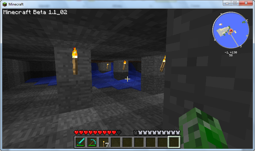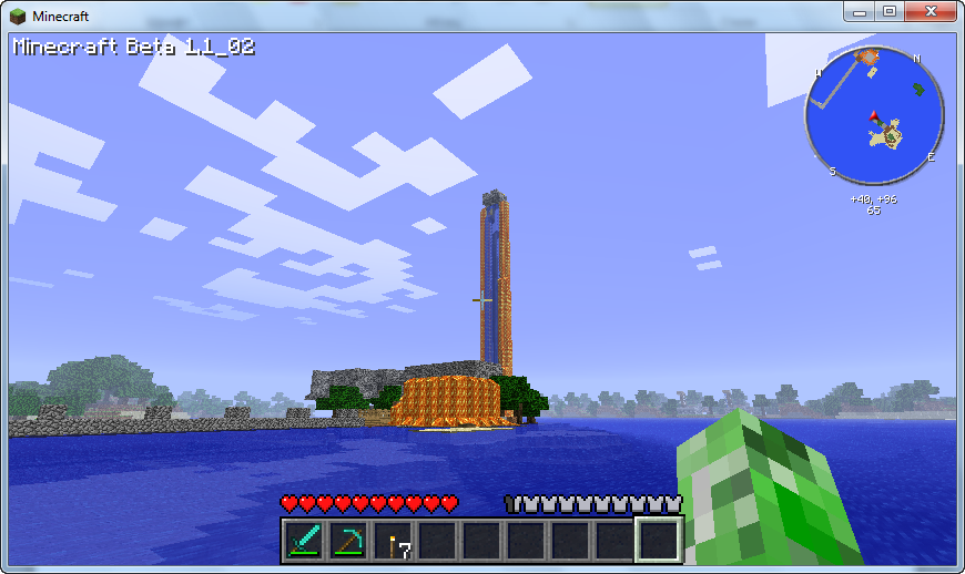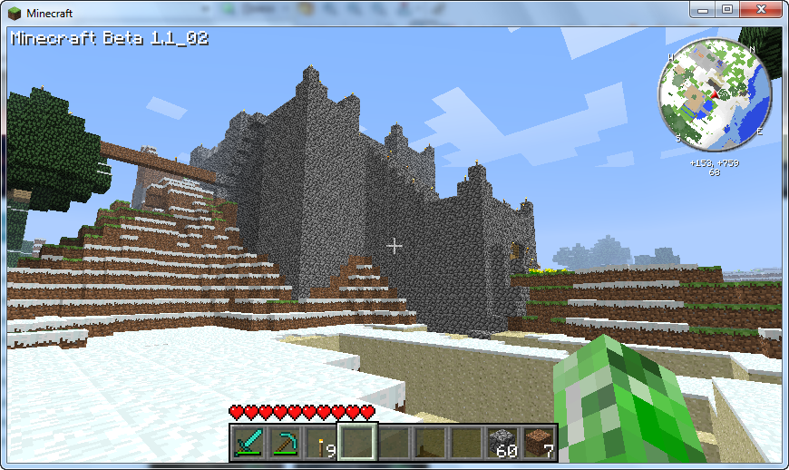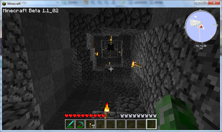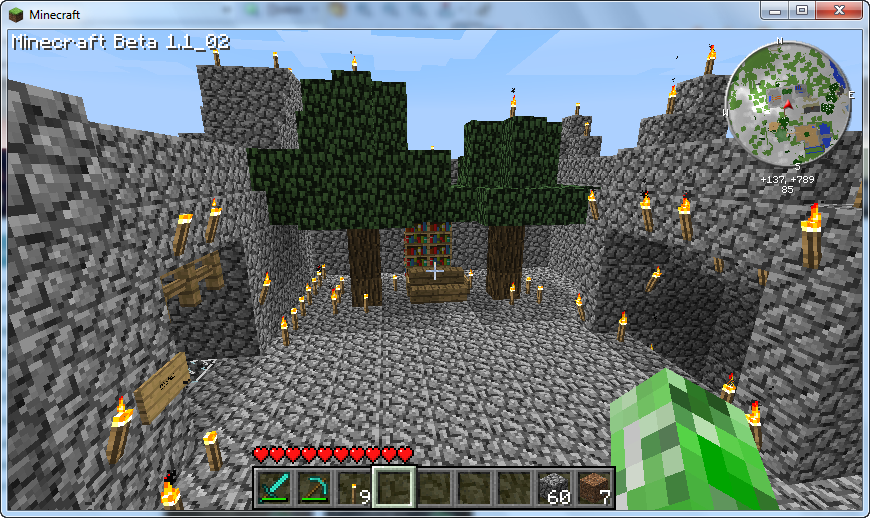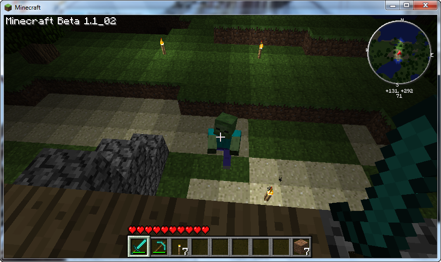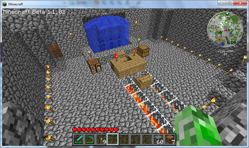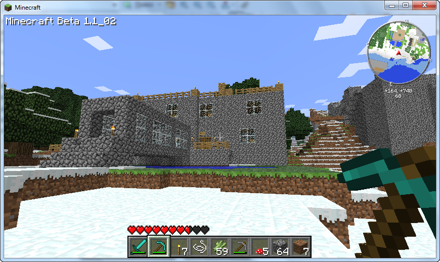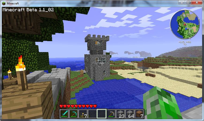 Пока я исследовал эти подземелья, наступила ночь, но впереди был ещё долгий путь, поэтому, рискуя жизьнью, я начал пробираться сквозь густые леса и пустынные равнины, за мной увязался один очень настойчивый зомби, и кто знает, чем бы закончилось моё приключение, если бы вдалеке я не увидел огни непонятного строения. Подойдя ближе, я ясно смог различить нечто, возможно, служащее кому-то ночным убежищем, во всяком случае, именно так использовал его я.