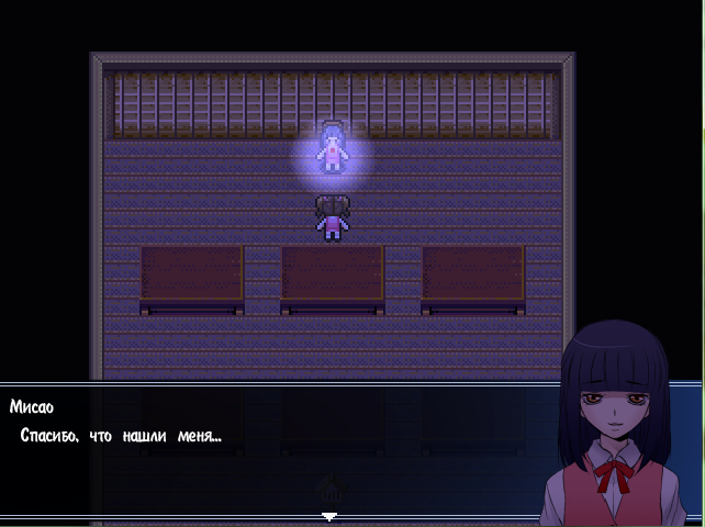 Собираемся в школу, попутно слушая историю Мисао, и в классе вкратце знакомимся со всеми персонажами игры (ну кроме Мисао). После неожиданного землетрясения, аля Corpse Party, нас переносит в комнату студ. совета, которая послужит точкой сохранения в течение игры. Знакомимся с Онигаварой (кто играл в Mad Father – немало удивится, встретив Огра) и Мисс Библиотекой (говорят – она аналог Аи с того же Mad Father ‘ а). Наконец нам предоставили управление и теперь подробней о целях игры: девушку по имени Мисао, с которой так желала подружиться Аки убил некий психопат, мало того он раскидал части тела бедняжки по всей школе и теперь девушка никак не успокоится и насылает проклятие. Наша цель – собрать все части и преподнести на алтарь. Для того чтобы получить все части нужно получить и использовать все предметы (всего их – 9). Точка сохранения – Онигавара, но можно сохраниться, нажав 'c' (учтите, такое сохранение сотрется при выходе из игры).