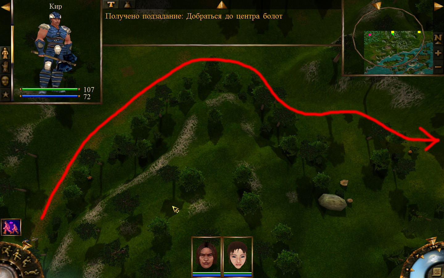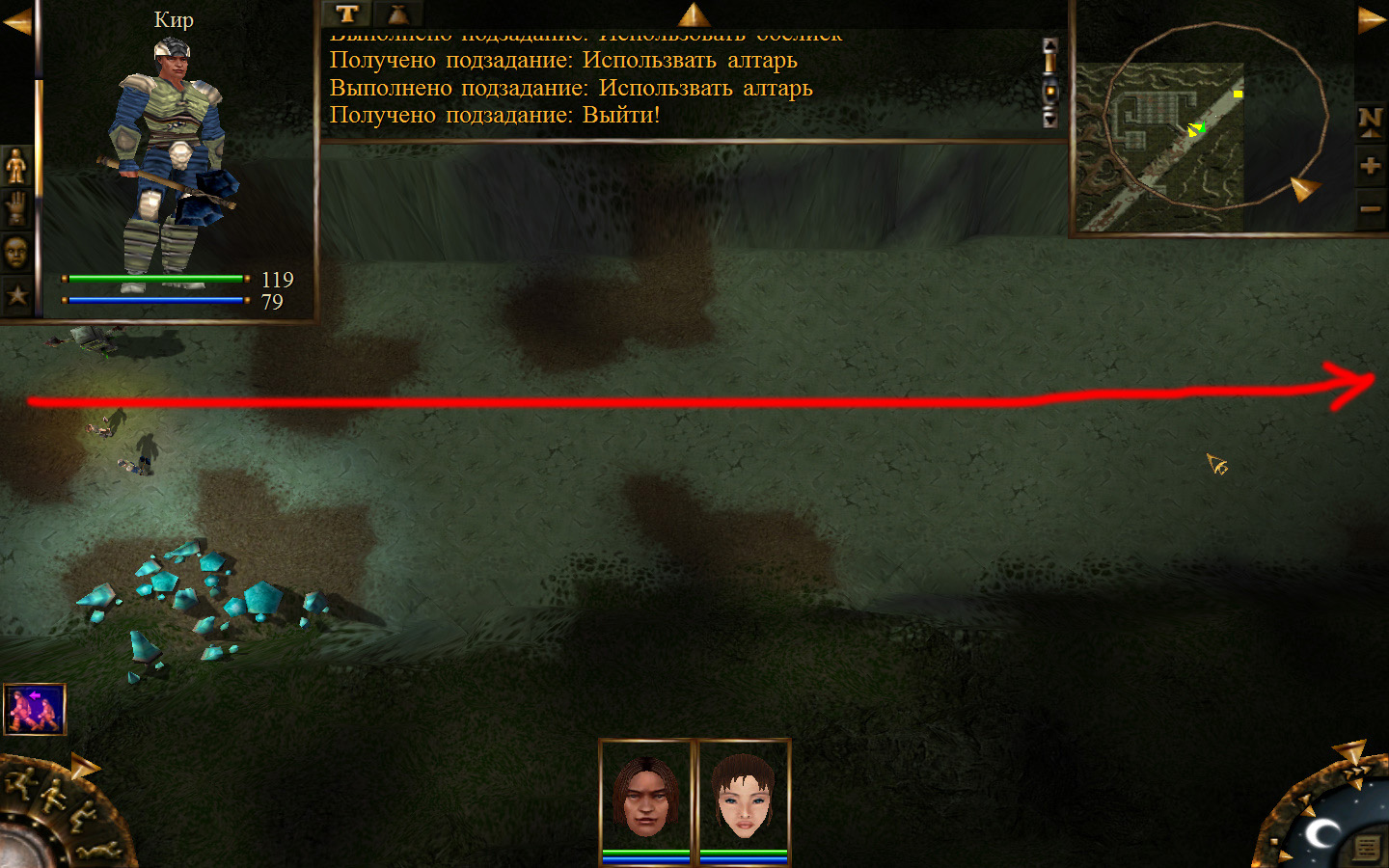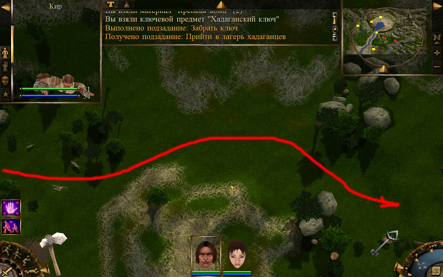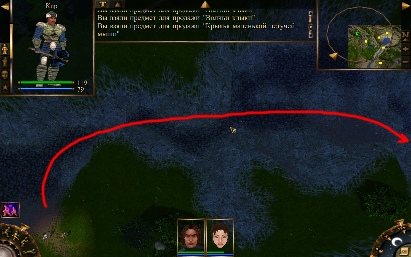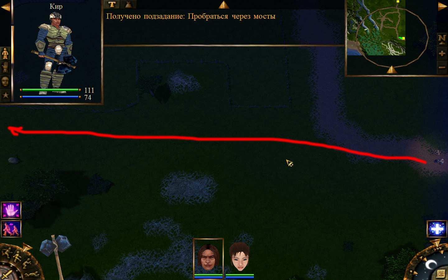 И вот, мы на Гипате, но не все так просто. Закинуло нас не пойми куда и не пойми как. Кир и Кель находятся в разных местах, локация зовется Мертвый город и нам необходимо найти поселение. Киром ползем вдоль реки, по той же траектории, что и на скрине. Убиваем одну за другой ядовитых жаб, лучше всего со спины и по одной, потому что с несколькими на данном этапе развития персонажа никак не справиться. Выползаем на тропинку и переключаемся на Кель.