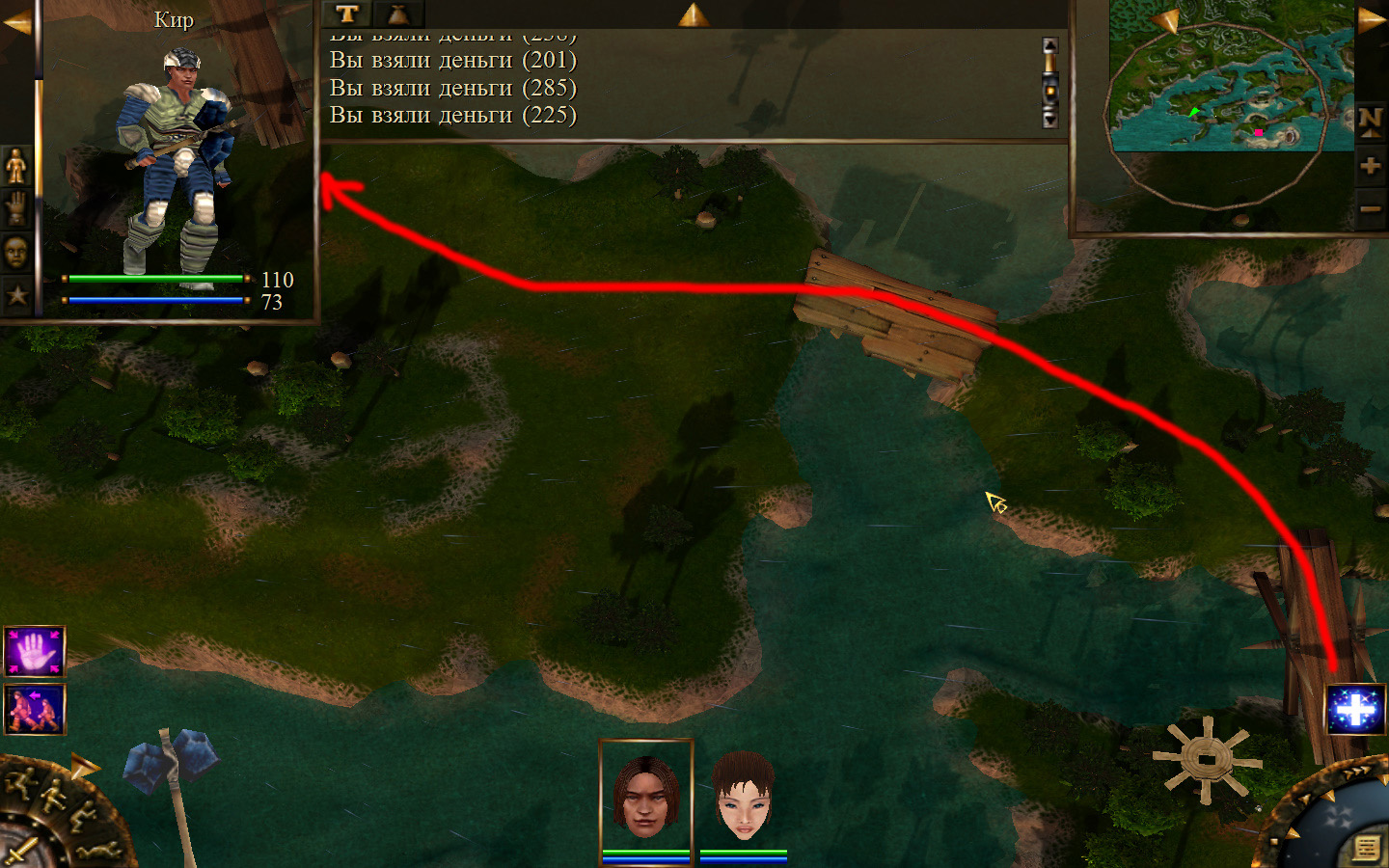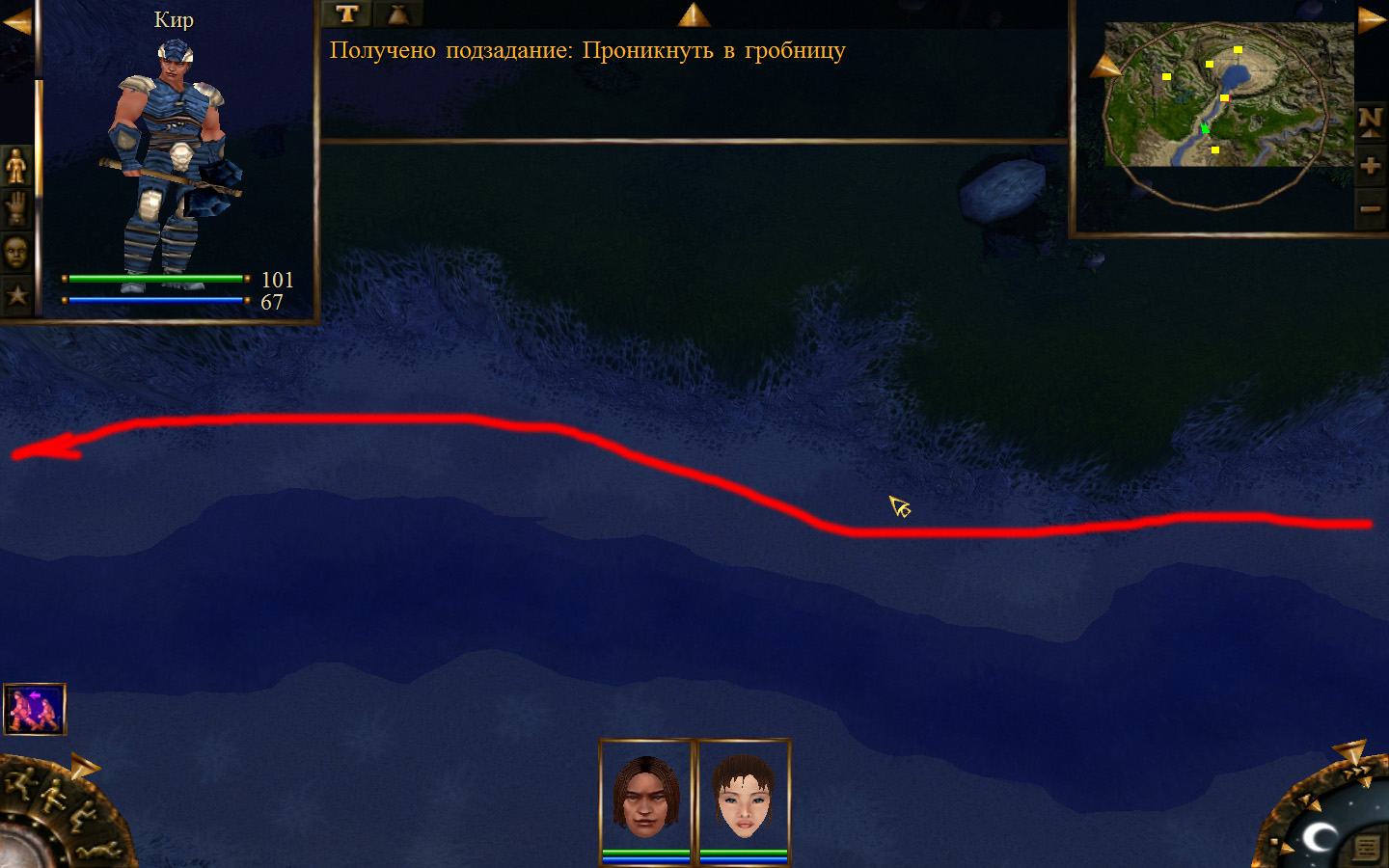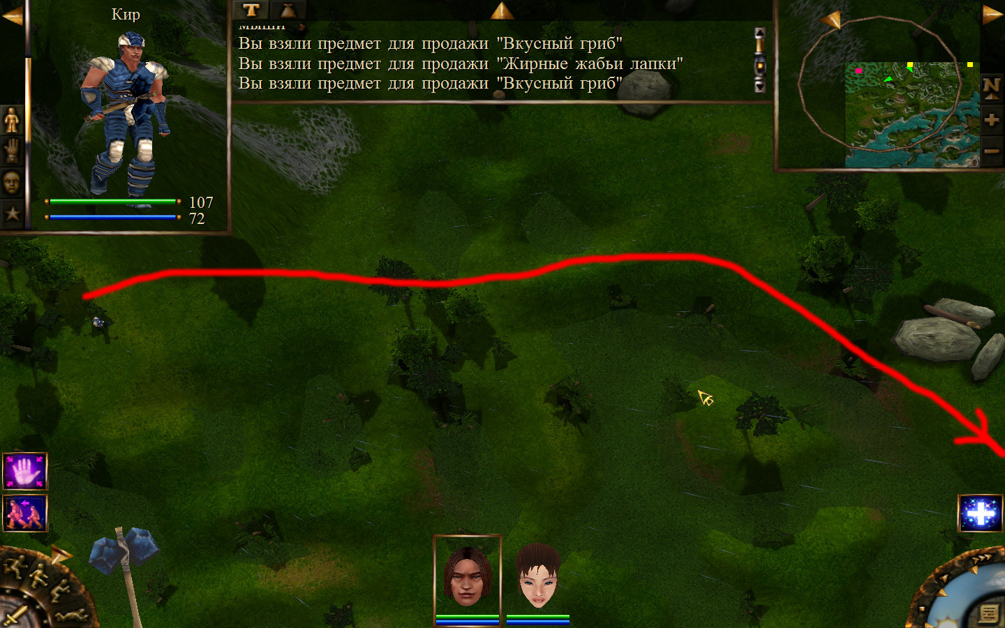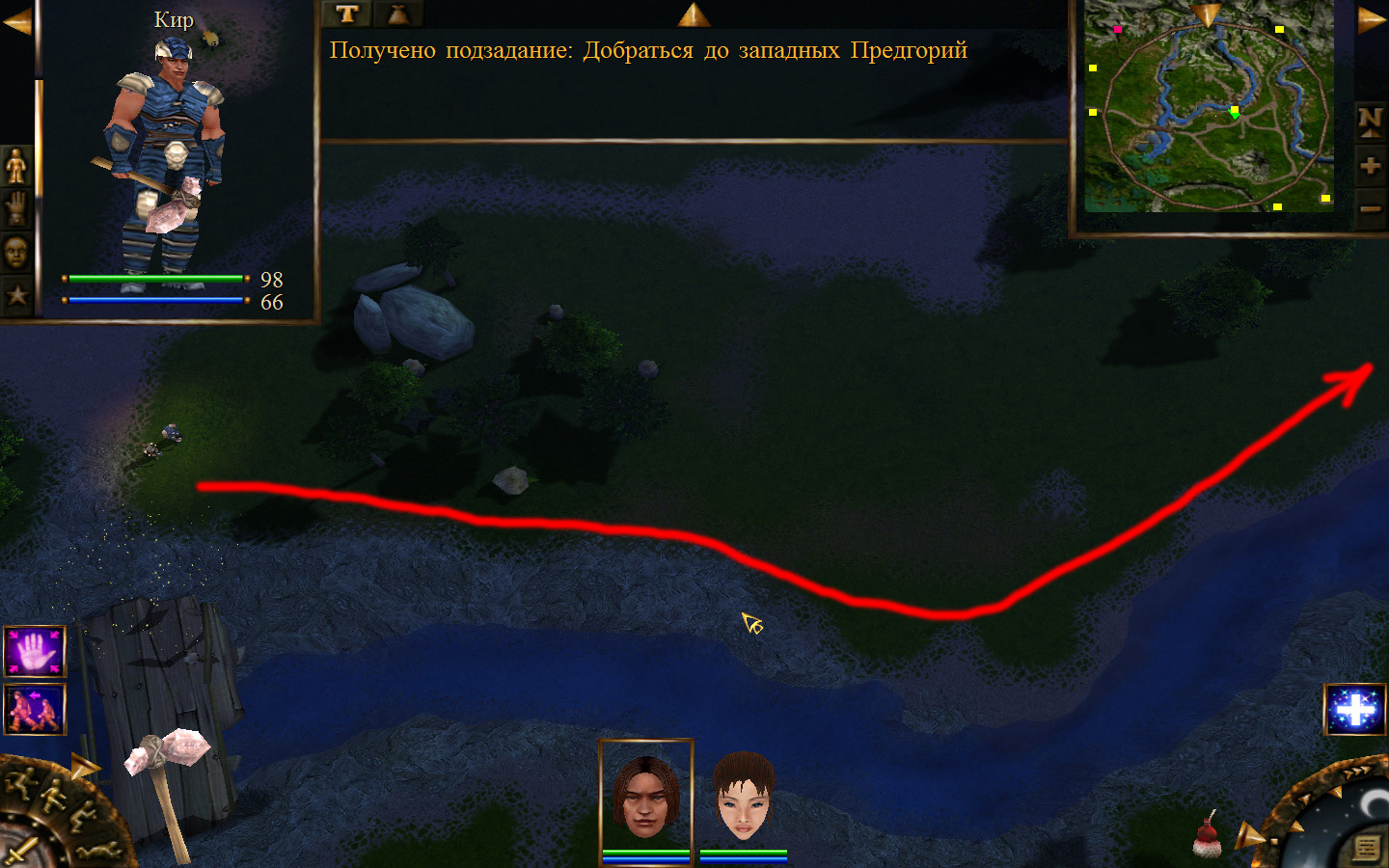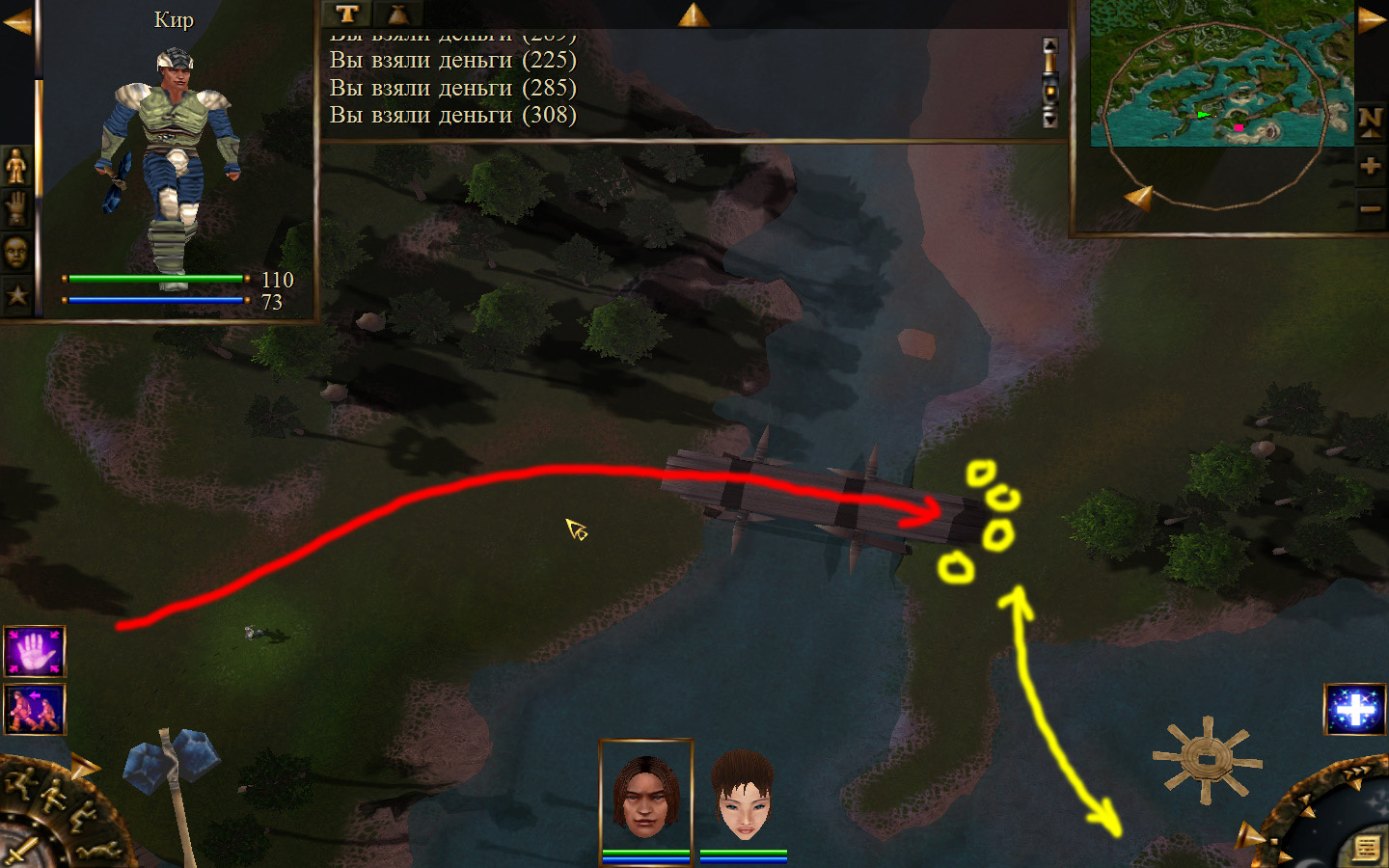 И вот, мы на Гипате, но не все так просто. Закинуло нас не пойми куда и не пойми как. Кир и Кель находятся в разных местах, локация зовется Мертвый город и нам необходимо найти поселение. Киром ползем вдоль реки, по той же траектории, что и на скрине. Убиваем одну за другой ядовитых жаб, лучше всего со спины и по одной, потому что с несколькими на данном этапе развития персонажа никак не справиться. Выползаем на тропинку и переключаемся на Кель.