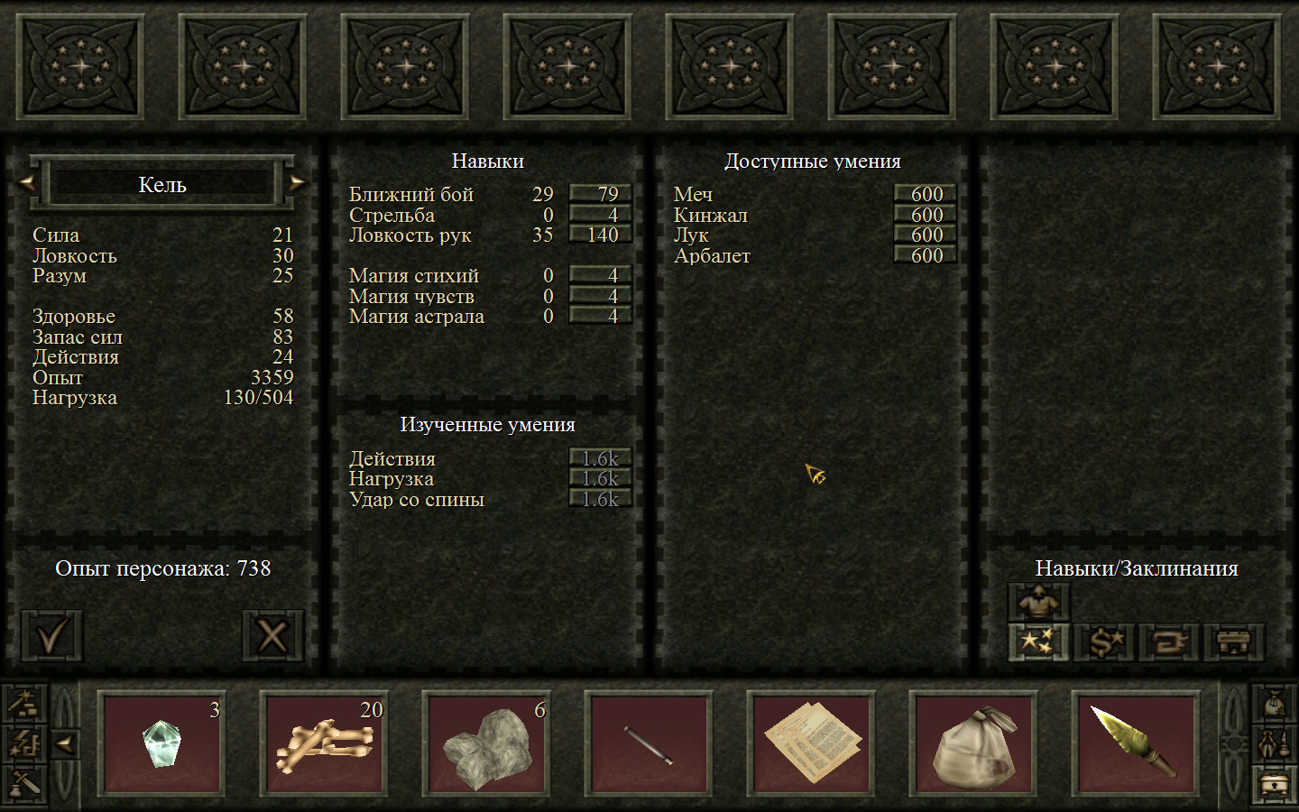 Как и сказал, я прошел секретные миссии, открыл все сундуки и «зачистил» следующие пещеры: Пещера Бабура и Пещера гоблинов. Если вы всего этого не сделали, то мои результаты могут сильно отличатся от ваших. А если все было сделанно так же как у меня, тогда результаты будут отличаться совсем немного, поскольку убийства, продажа предметов и получения опыта могут немного различаться это нормально.