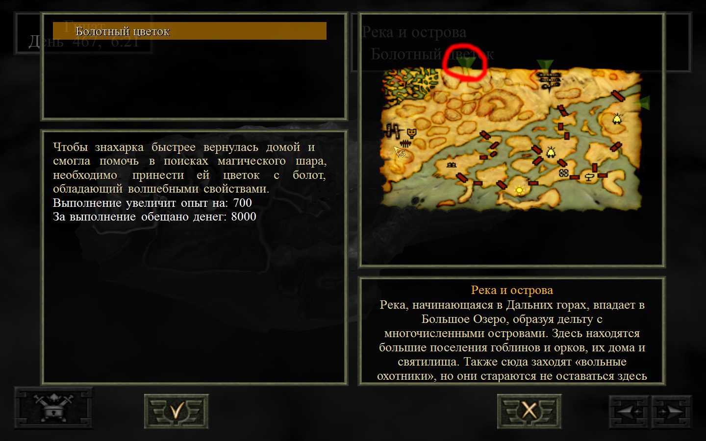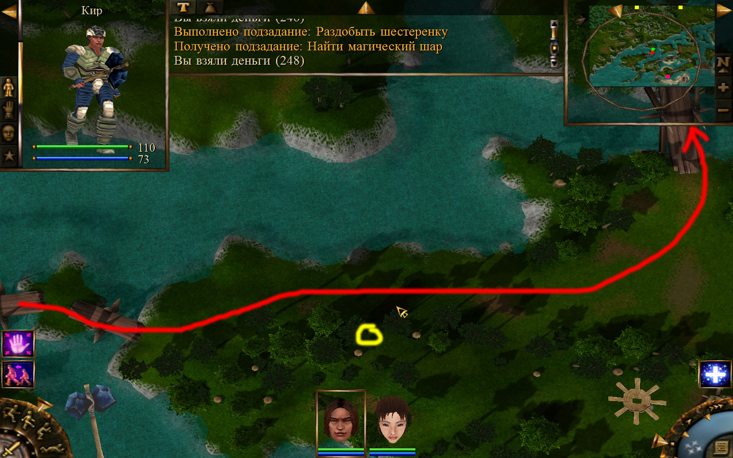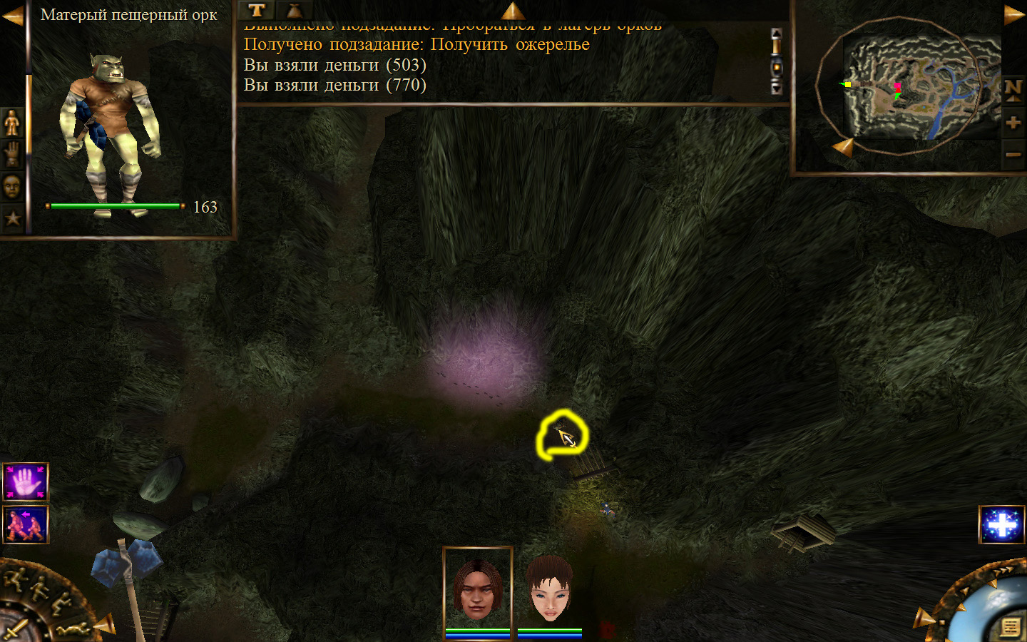 Разговариваем со Знахаркой, и после этого получаем задание: отправиться в Пещеры омыть шар в ручьях пещеры.