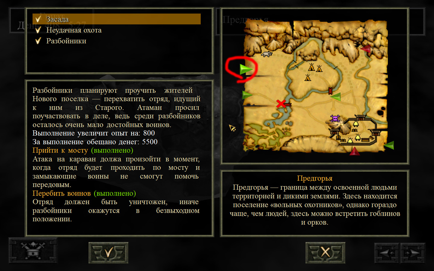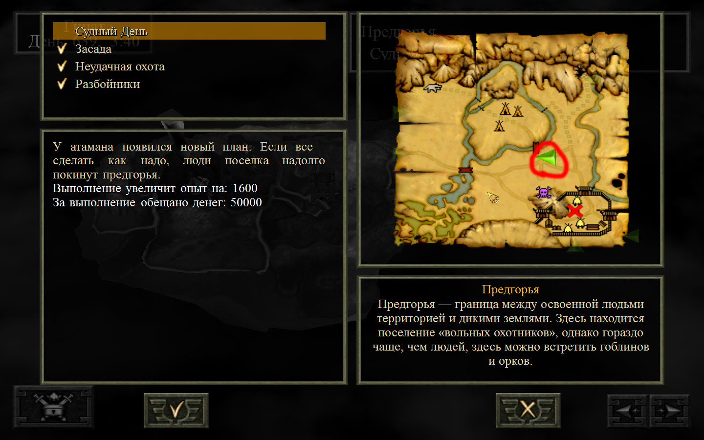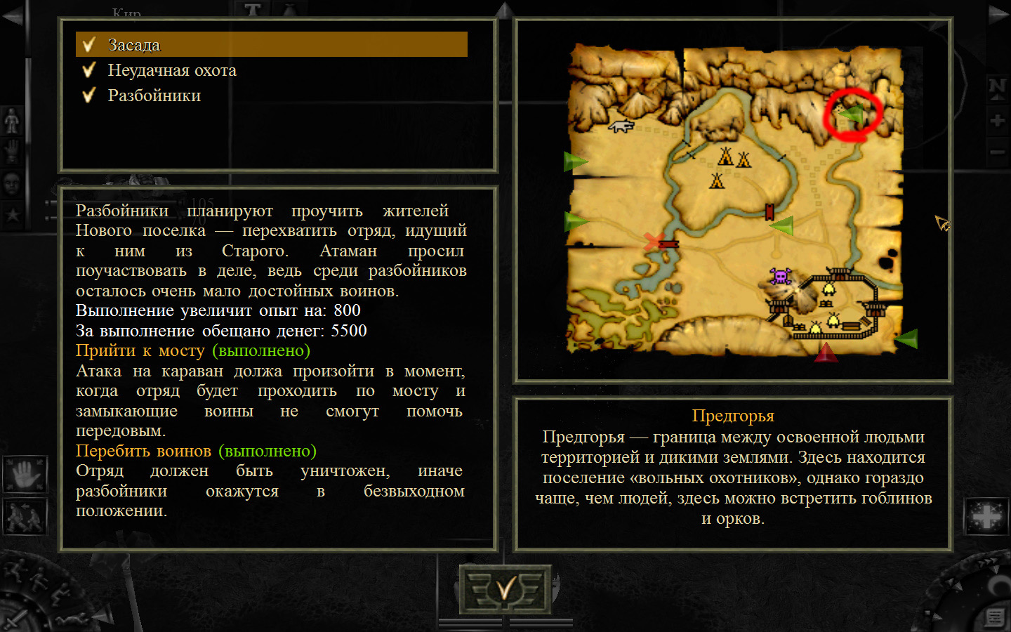 Теперь разговариваем с атаманом, он дает задание уничтожить людей в новом поселке. Отправляемся.